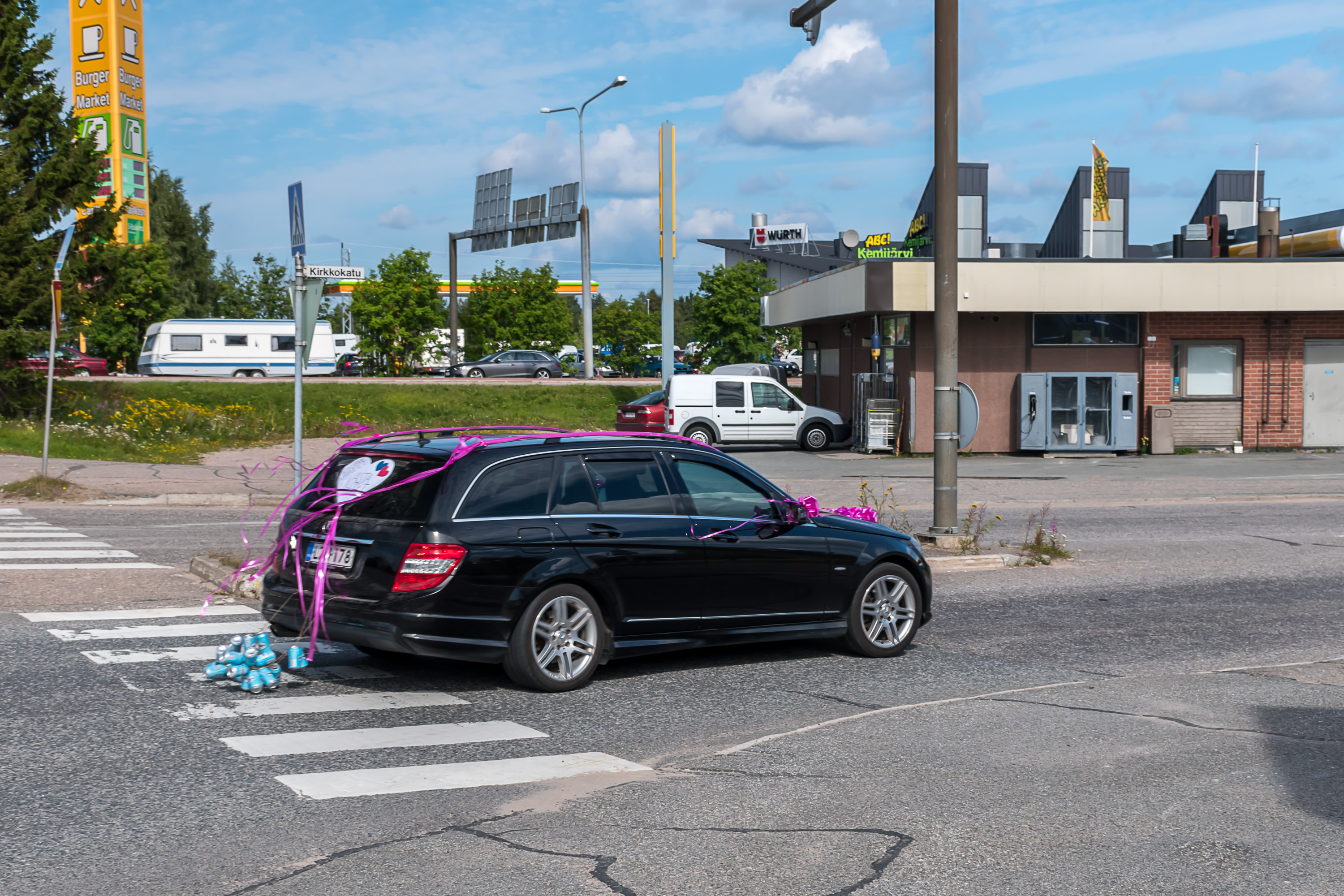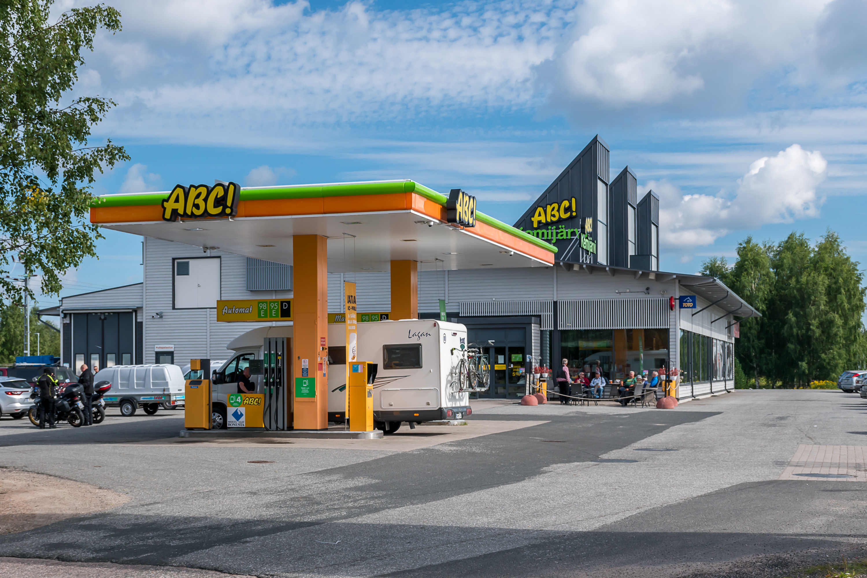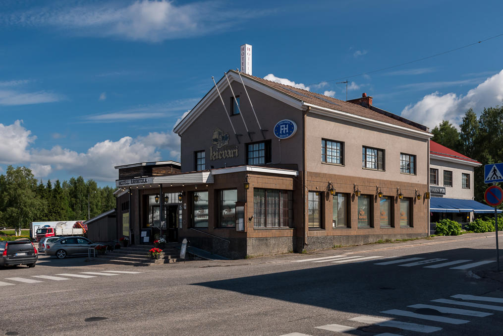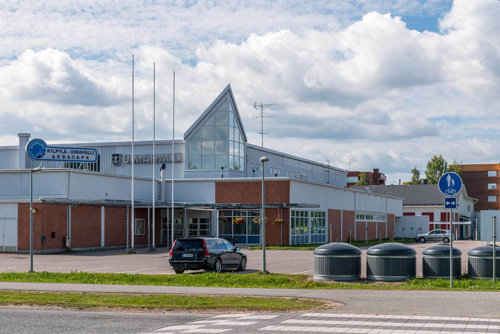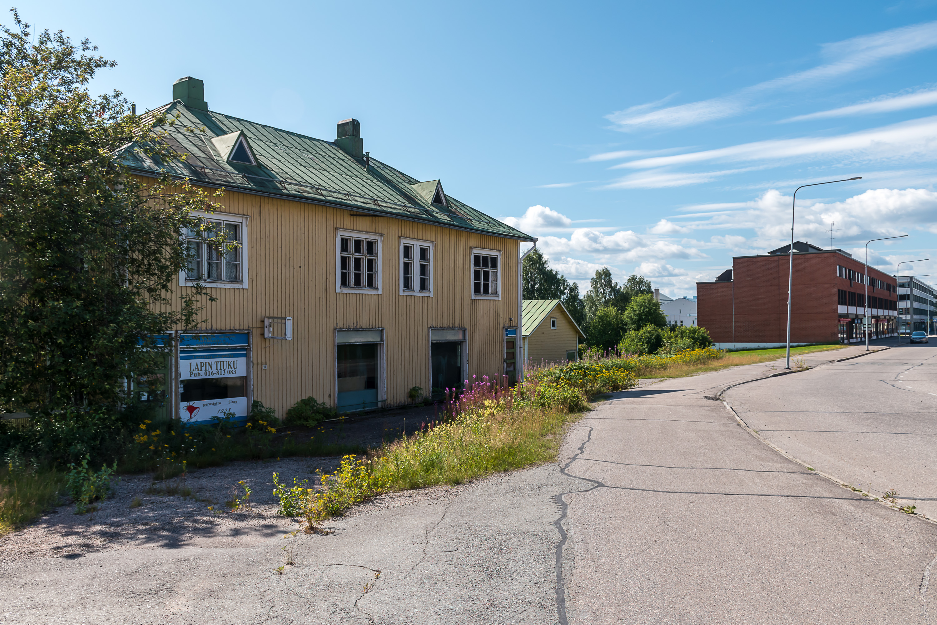 Так что население за последние 40 лет упало вдвое, но ничего, живет себе городок пока. Судя по вывеске на русском, могло быть даже бюджетное место отдыха раньше для жителей российской Карелии/Мурманской обл. :) "Аквапарк" громко сказано, конечно.