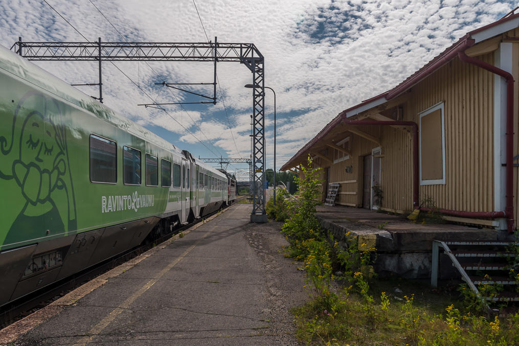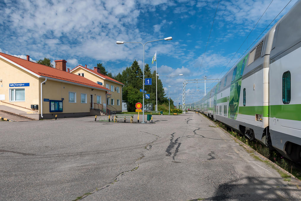 И единственный поезд Хельсинки-Кемиярви в расписании. Станция и ж/д построены в 1934. За Кемиярви по мосту через озеро на восток в сторону Саллы и границы продолжается ныне заброшенная ж/д, построенная в 1940-1941 — про нее я писал в посте про Саллу.