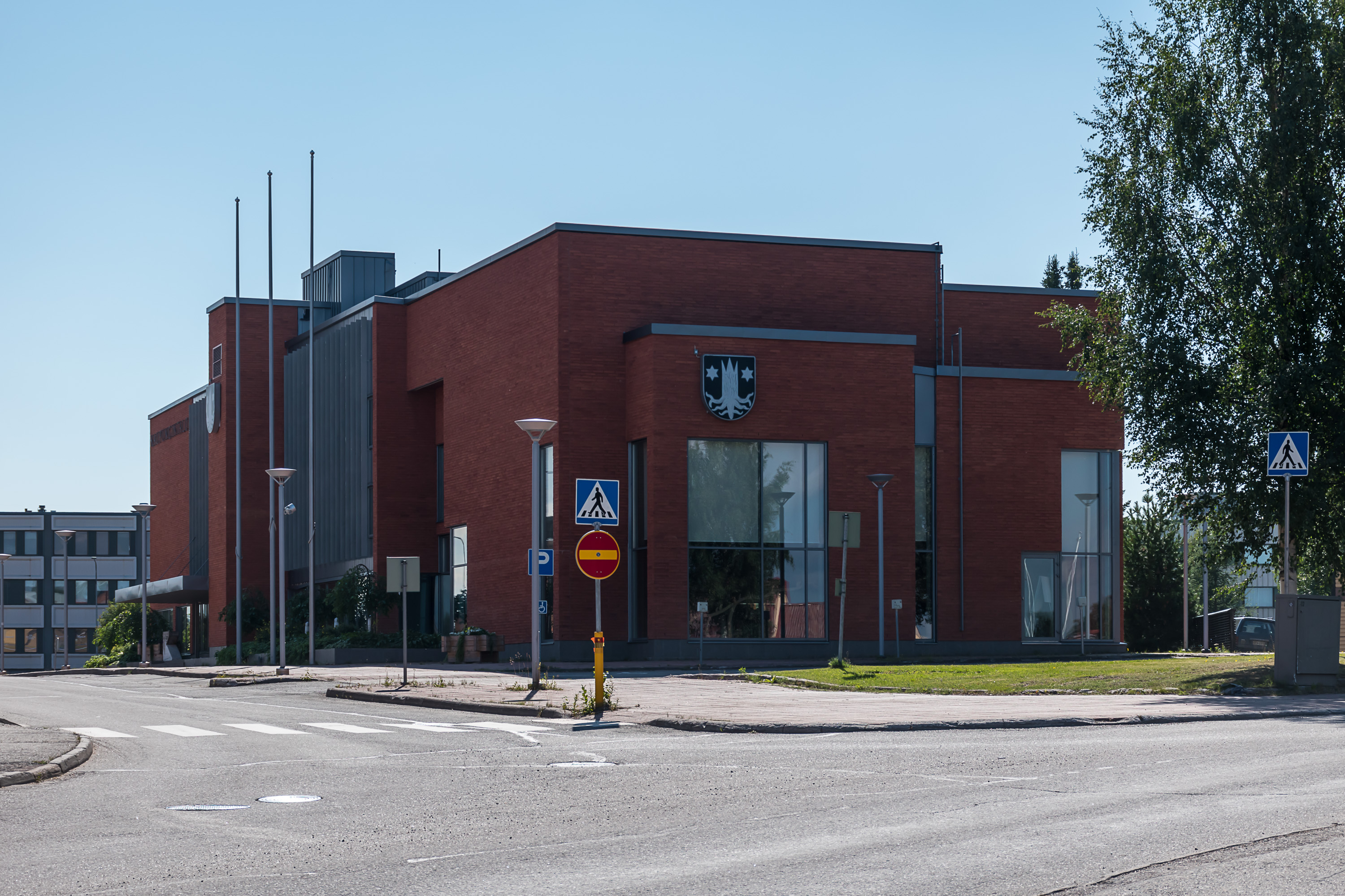 Сам Кемиярви — городок, разумеется, молодой и без серьезных достопримечательностей. Статус местечка (kauppala) с 1957 и города с 1973. Герб — пень под звездами. Градообразующим предприятием долго был целлюлозный комбинат (его фото, 2007 года, из вики).