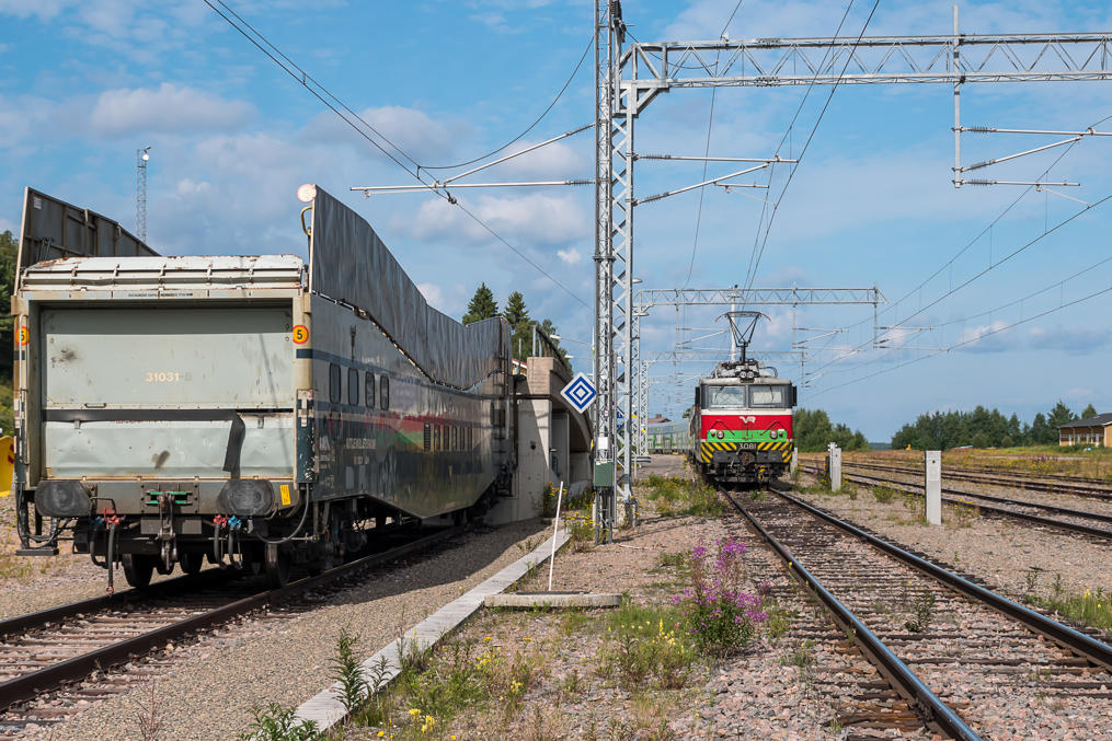 Вот промежуточным пунктом по пути в остальную Лапландию Кемиярви вполне может быть — здесь находится одна из трех конечных станций идущих из Хельсинки ночных/автопоездов. Отсюда удобно дальше ехать в Куусамо/Рука и Восточную Лапландию. Непривычно длинный состав стоит :)