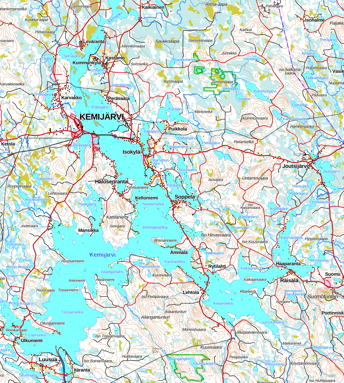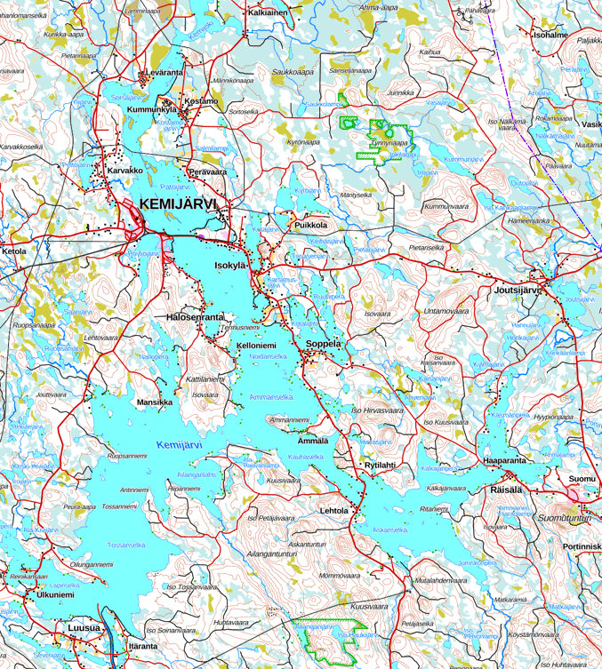 Кроме озера, однако, в окрестностях города крупных природных достопримечательностей нет, так что туристам он малоинтересен. Ну, в 30 км на юго-восток мелкий лыжный курорт Суомутунтури, а в 40 км на север национальный парк Пюхя-Луосто, но рядом с ними есть где и поближе остановиться.