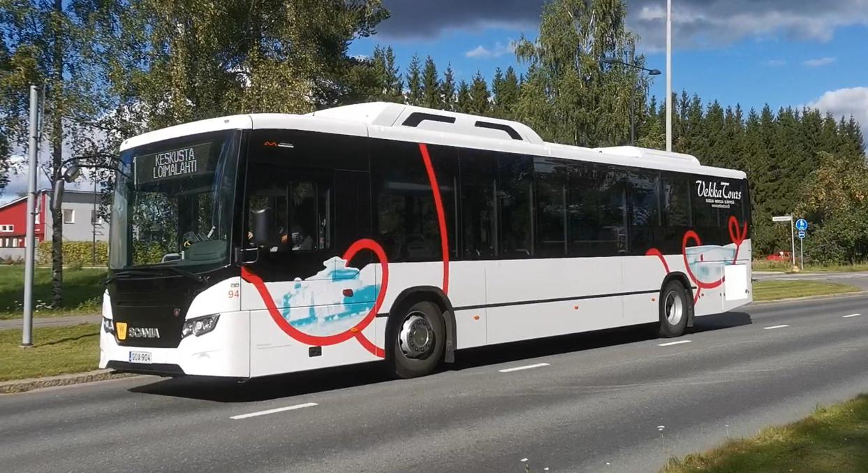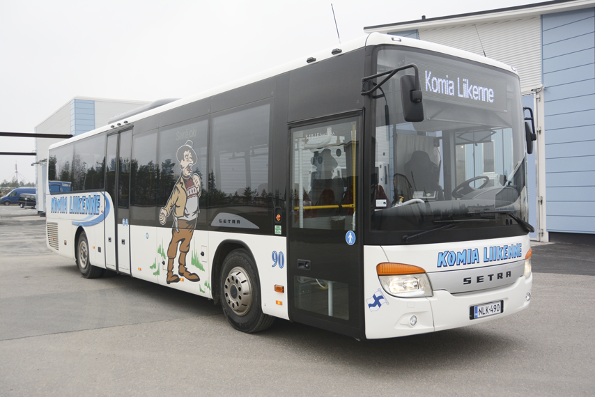 Сейняйоки: Komia Liikenne ("Красивое движение", komia — диалектная версия komea, известное южноостроботнийское слово, возможно, с чуть другим оттенком смысла). Своих фото нет, фото с сайта Härmän Liikenne. Белые с ржачным чуваком в остроботнийском свитере-юссипайте.