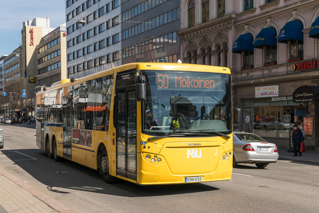 Турку: Föli (fölissä на местом говоре означает то же, что kyydissä, быть пассажиром). Желтые. По-моему единственная крупная автобусная система без зон, то есть в пригороды ехать так же стоит, как по центру Турку.