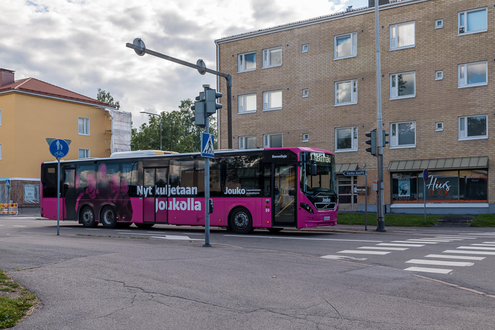 Йоэнсуу: JOJO (Joensuun joukkoliikenne, Общественный транспорт Йоэнсуу). Когда я был последний раз, почти 4 года назад, большинство, если не все, были без какой-либо собственной окраски. Сейчас вроде сине-розовые, последнее фото с их сайта.
