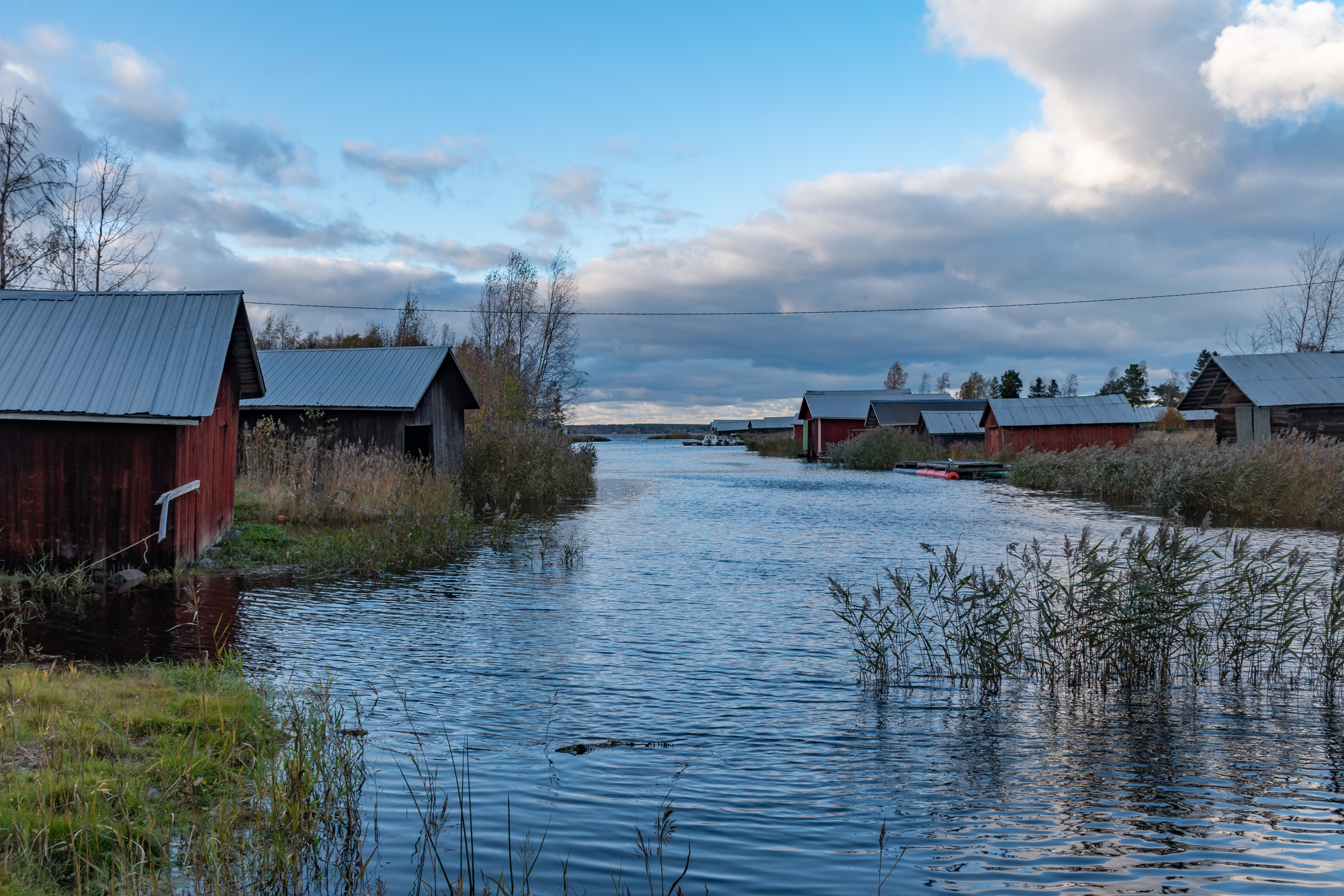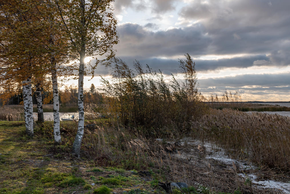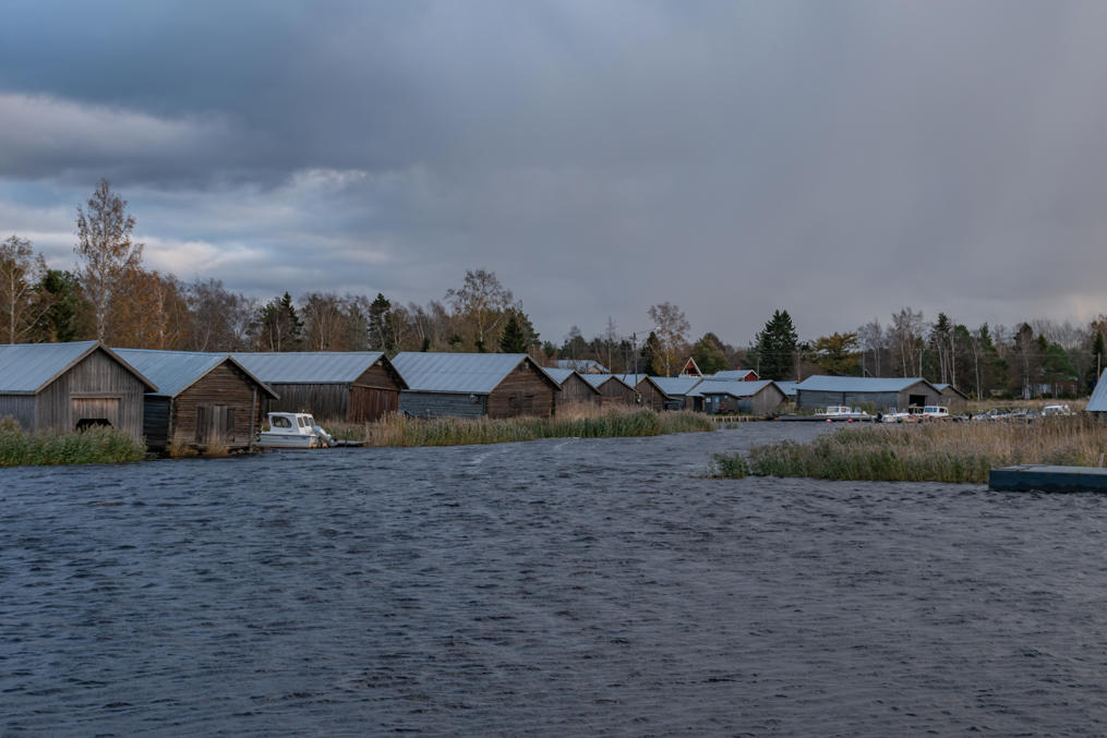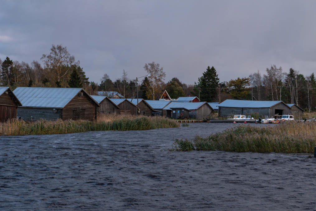 Корснес расположен на берегу Ботнического залива, но прямо совсем на берегу тут не живут — только располагается несколько лодочных и рыбных гаваней, да дачи стоят. Вода очень высоко стояла в ту поездку (в середине октября), в море тоже. Гавань Голёрен (Gålören, чуть-чуть за границей Корснеса, на стороне Малакса уже).