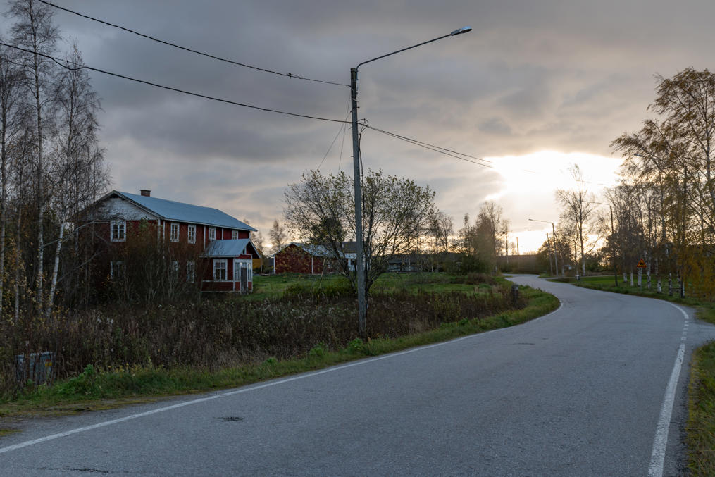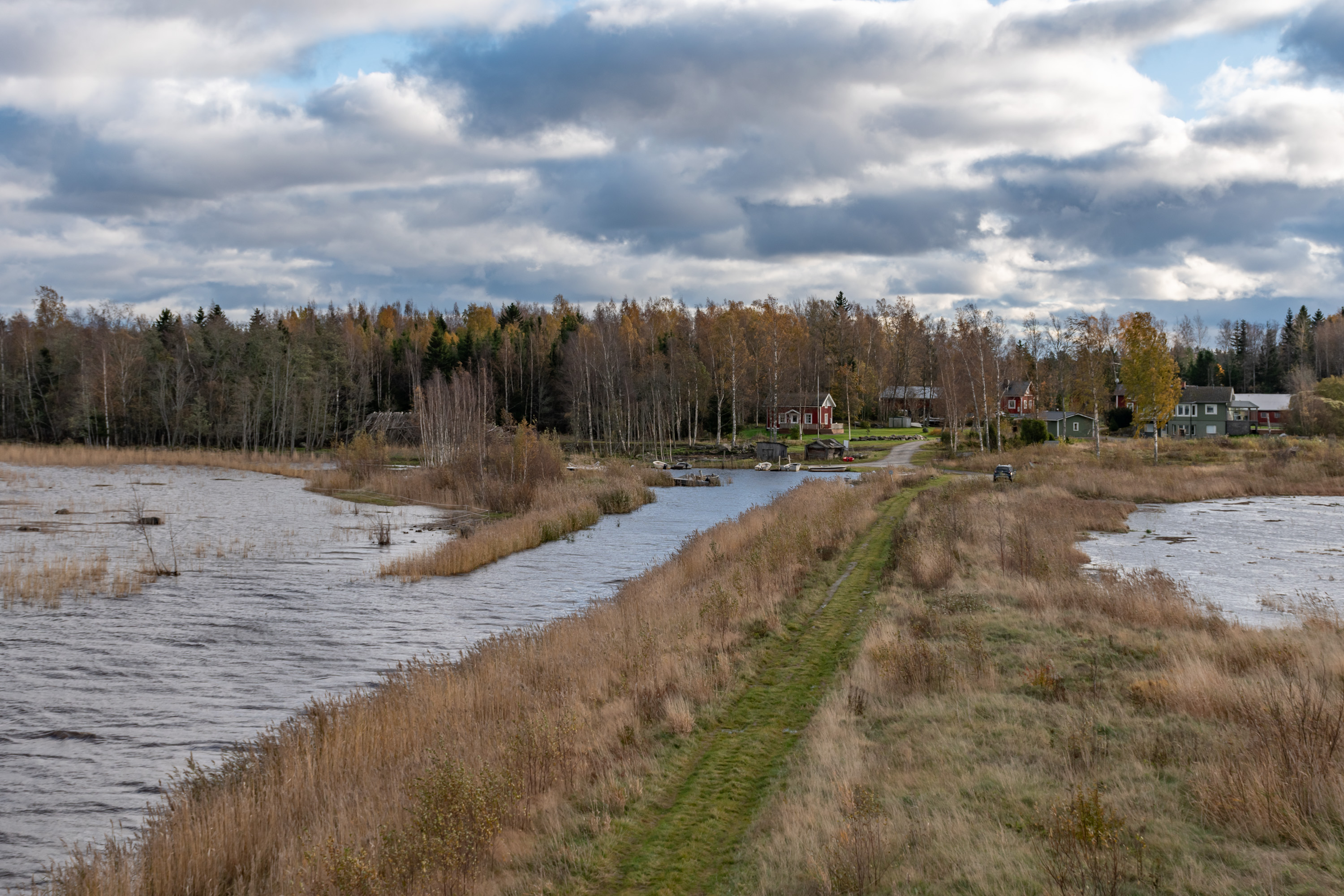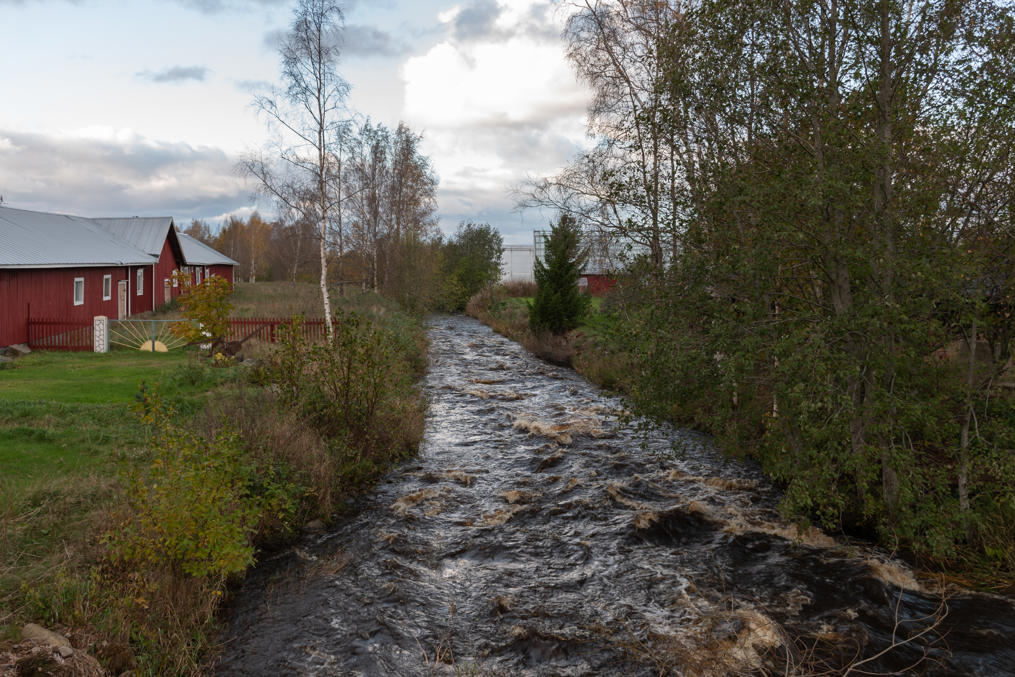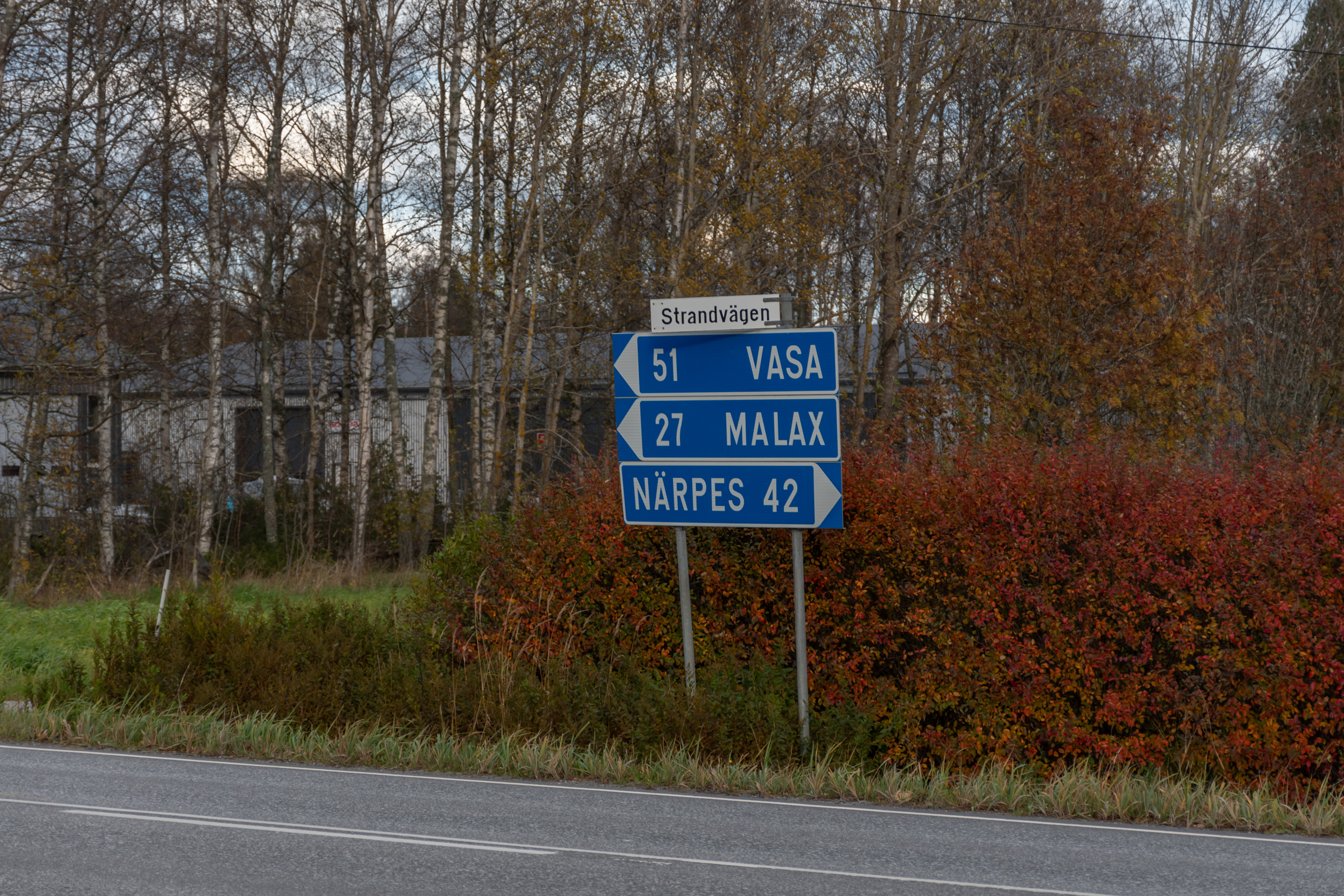 Корснес расположен на берегу Ботнического залива, но прямо совсем на берегу тут не живут — только располагается несколько лодочных и рыбных гаваней, да дачи стоят. Вода очень высоко стояла в ту поездку (в середине октября), в море тоже. Гавань Голёрен (Gålören, чуть-чуть за границей Корснеса, на стороне Малакса уже).