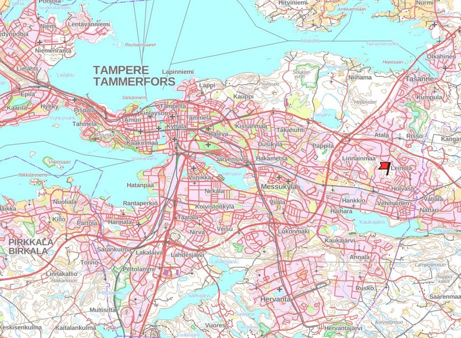 Правда, именно из-за отдаленности с тех пор памятник регулярно портили, пачкали краской и проч. Хотя сейчас островок леса здесь остался не таким уж большим, дальше вокруг частная застройка. А на центр Тампере от памятника указывает просека.