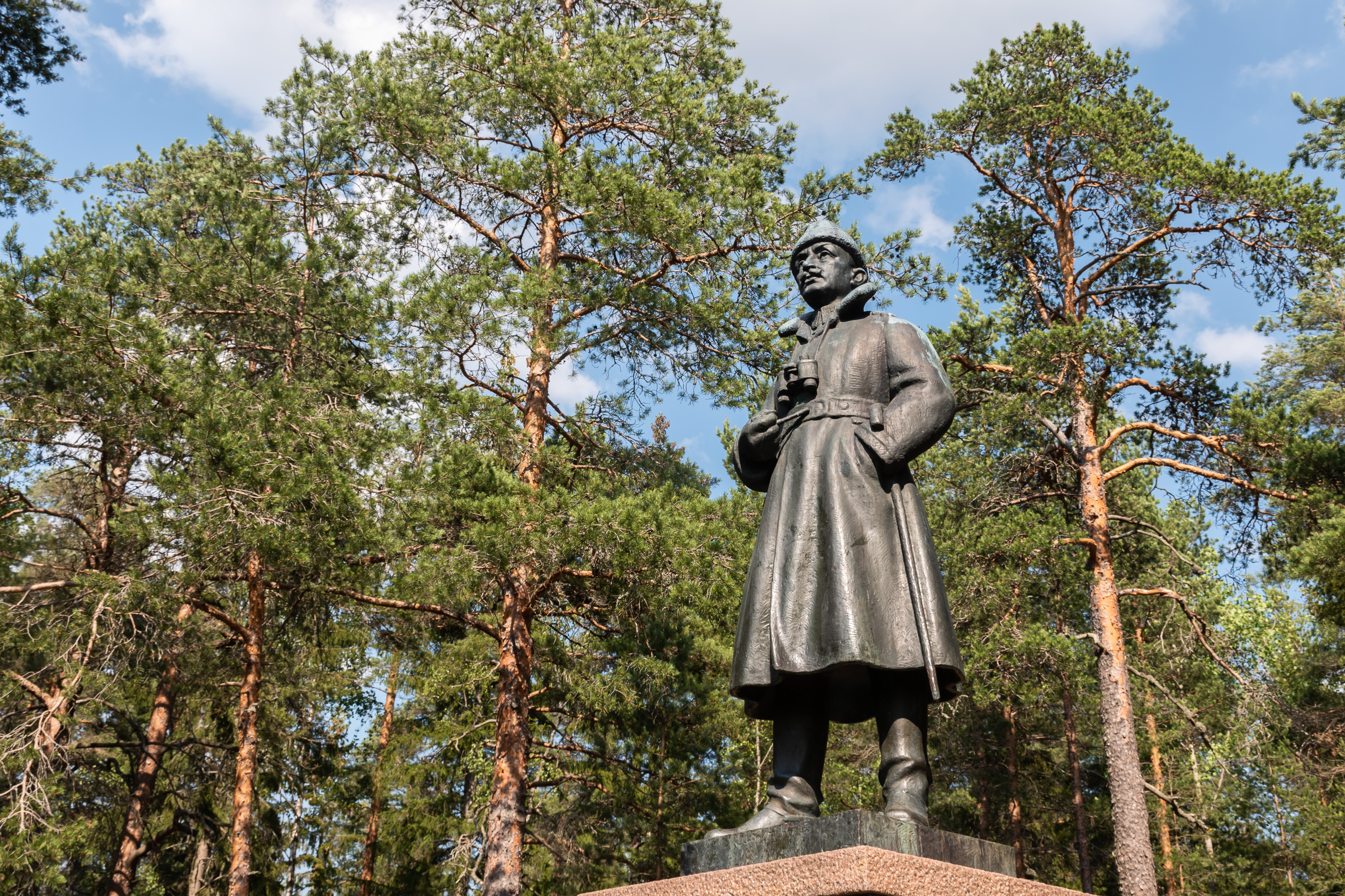 В газете Helsingin Sanomat чего-то вспоминали историю памятника Маннергейму в Тампере. Памятник интересен тем, что стоит на скале в лесу в 7 км от центра, в пригородном районе Лейнола (Leinola), уже за кольцевой дорогой.
