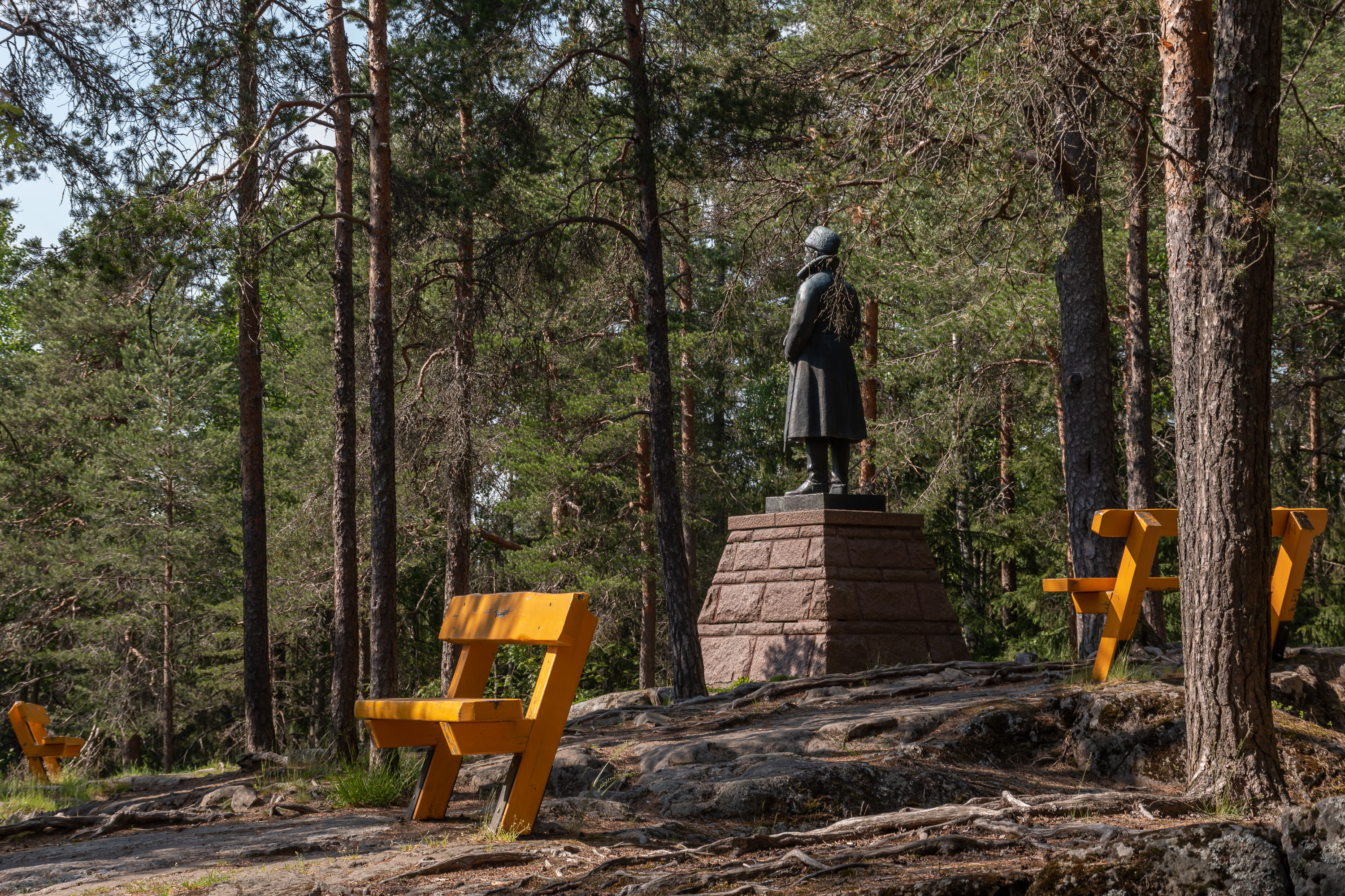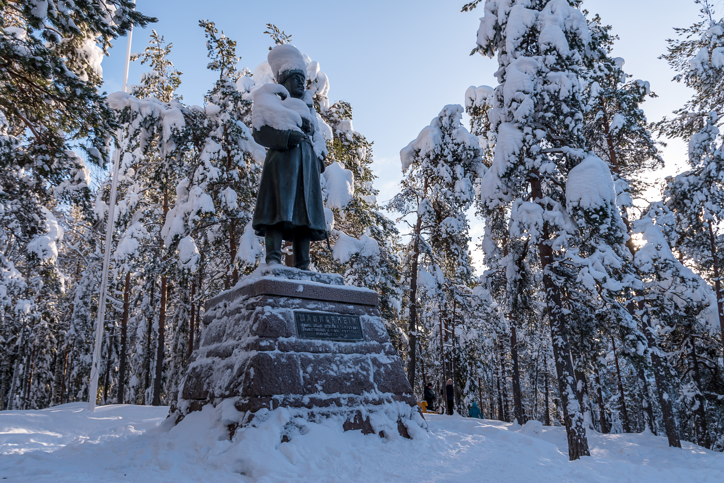 В газете Helsingin Sanomat чего-то вспоминали историю памятника Маннергейму в Тампере. Памятник интересен тем, что стоит на скале в лесу в 7 км от центра, в пригородном районе Лейнола (Leinola), уже за кольцевой дорогой.
