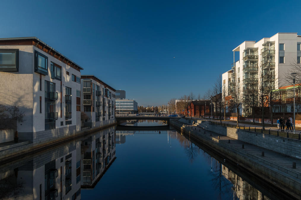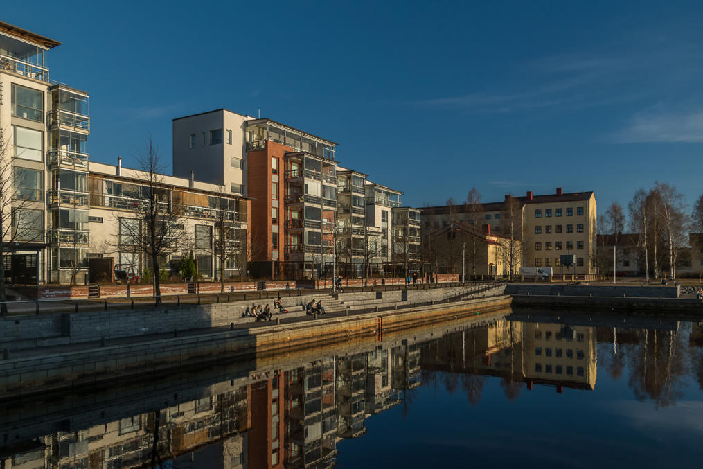5. Оулу немного напоминает Питер географией — крупная река в центре здесь разбивается на протоки и каналы. Единственный в общем-то финский город на дельте реки, ну Котка в принципе еще тоже, но Котка совсем другая. Впрочем, на островах дельты здесь гораздо меньше застройки, основная часть города на материке. В новых жилых кварталах с южной стороны бросаются в глаза заборы-решетки; наверное, тяжко было бы иначе, бухих много.