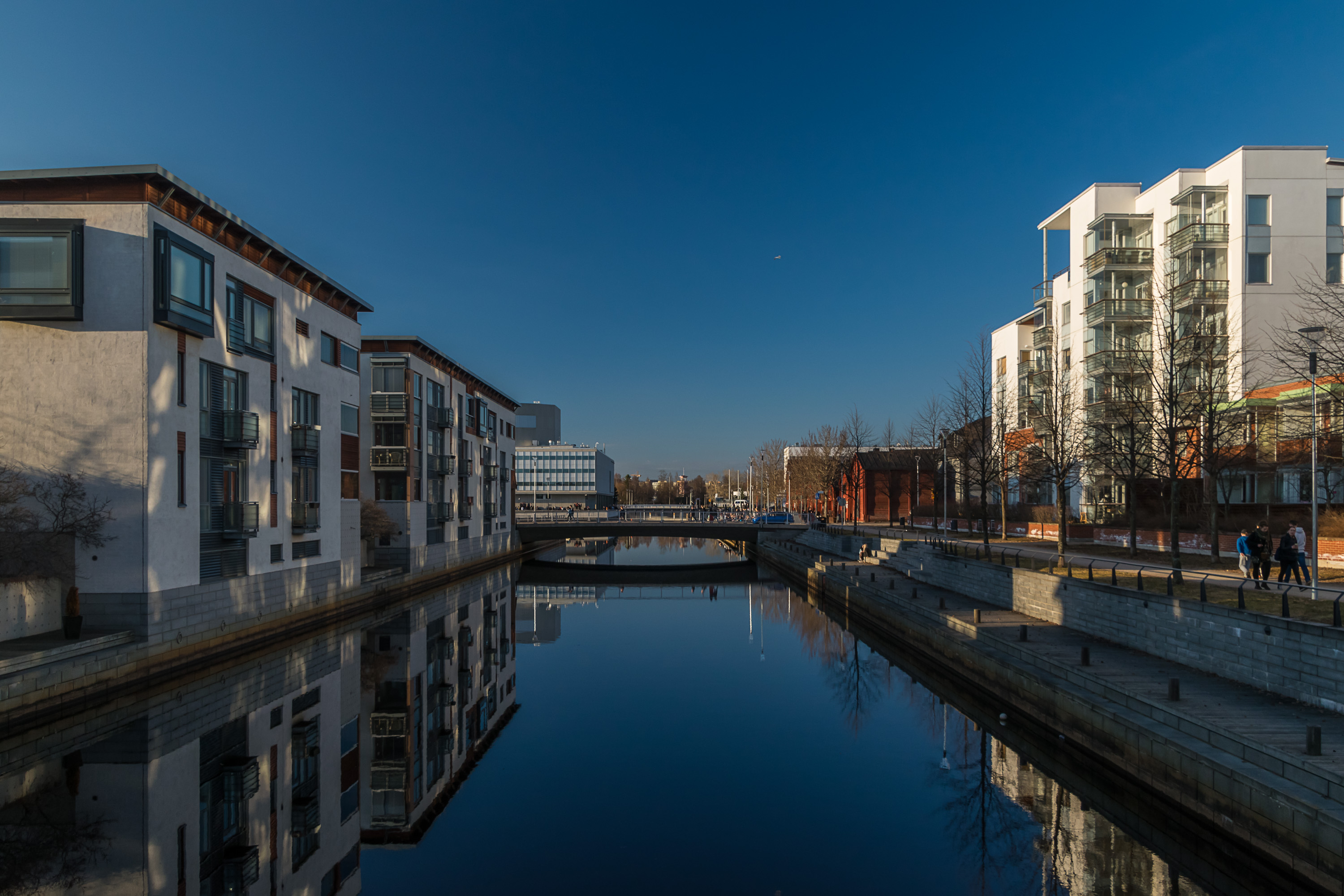 5. Оулу немного напоминает Питер географией — крупная река в центре здесь разбивается на протоки и каналы. Единственный в общем-то финский город на дельте реки, ну Котка в принципе еще тоже, но Котка совсем другая. Впрочем, на островах дельты здесь гораздо меньше застройки, основная часть города на материке. В новых жилых кварталах с южной стороны бросаются в глаза заборы-решетки; наверное, тяжко было бы иначе, бухих много.