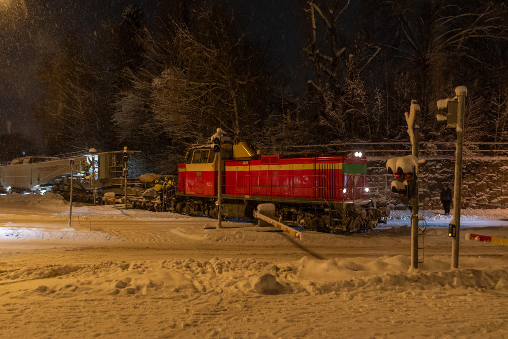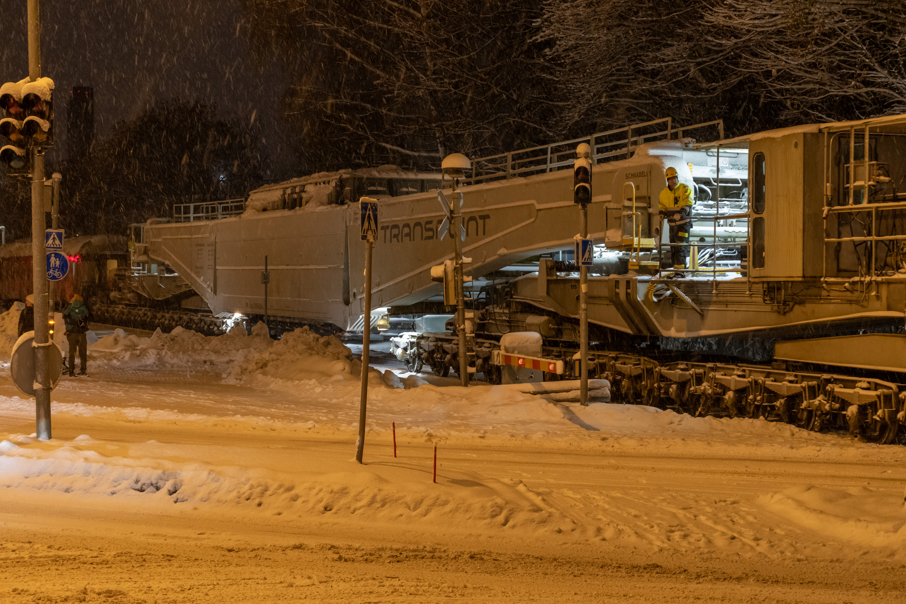 Одна перевозка, таким образом, занимает несколько дней и производится в основном по ночам. Идет поезд везде под тепловозами, контактную сеть отключают для безопасности. Гидравлический подвес может немного передвигаться в стороны или вверх-вниз, если есть проблема с габаритами.