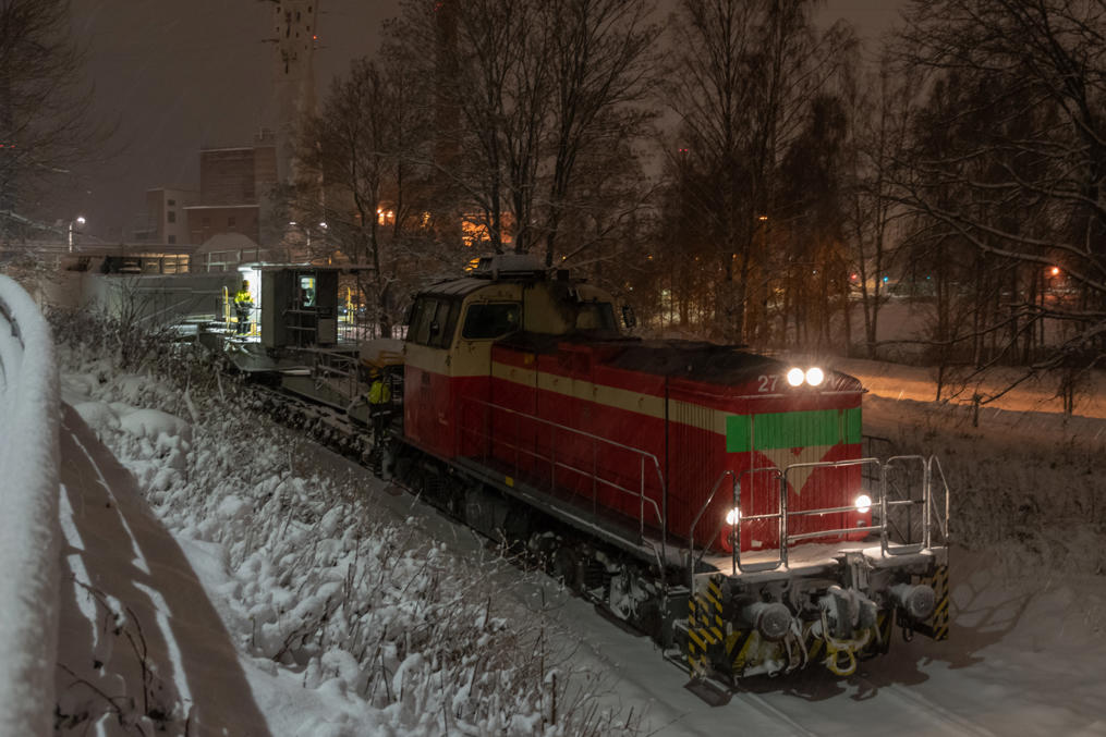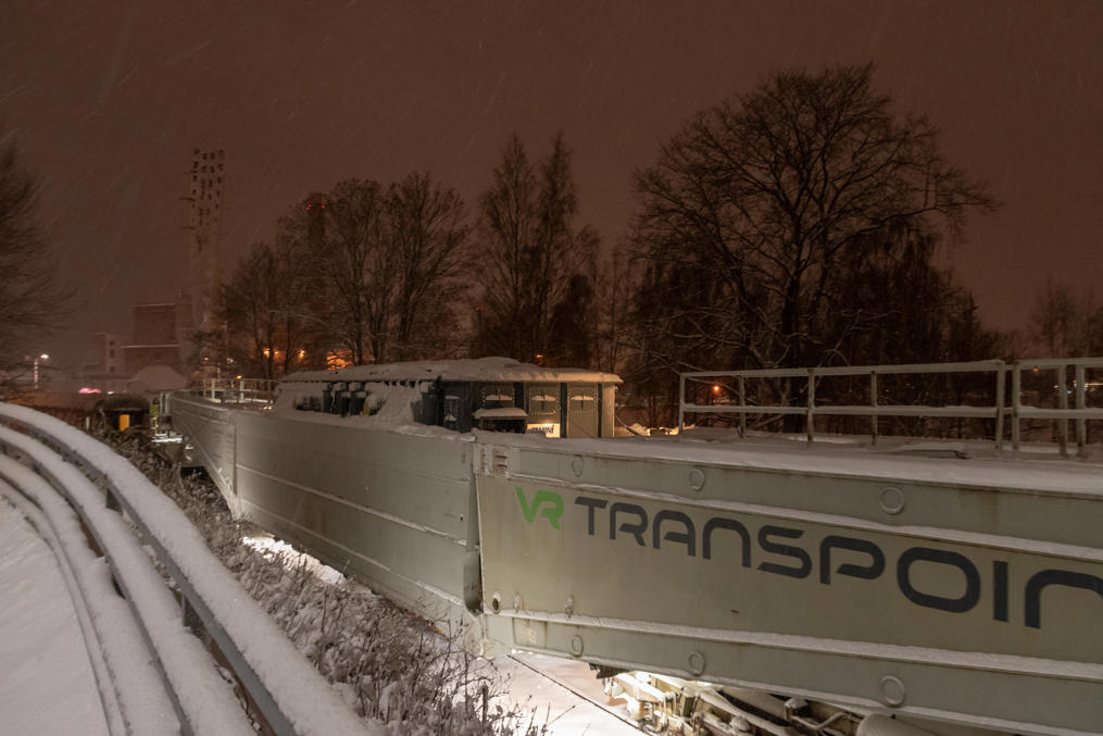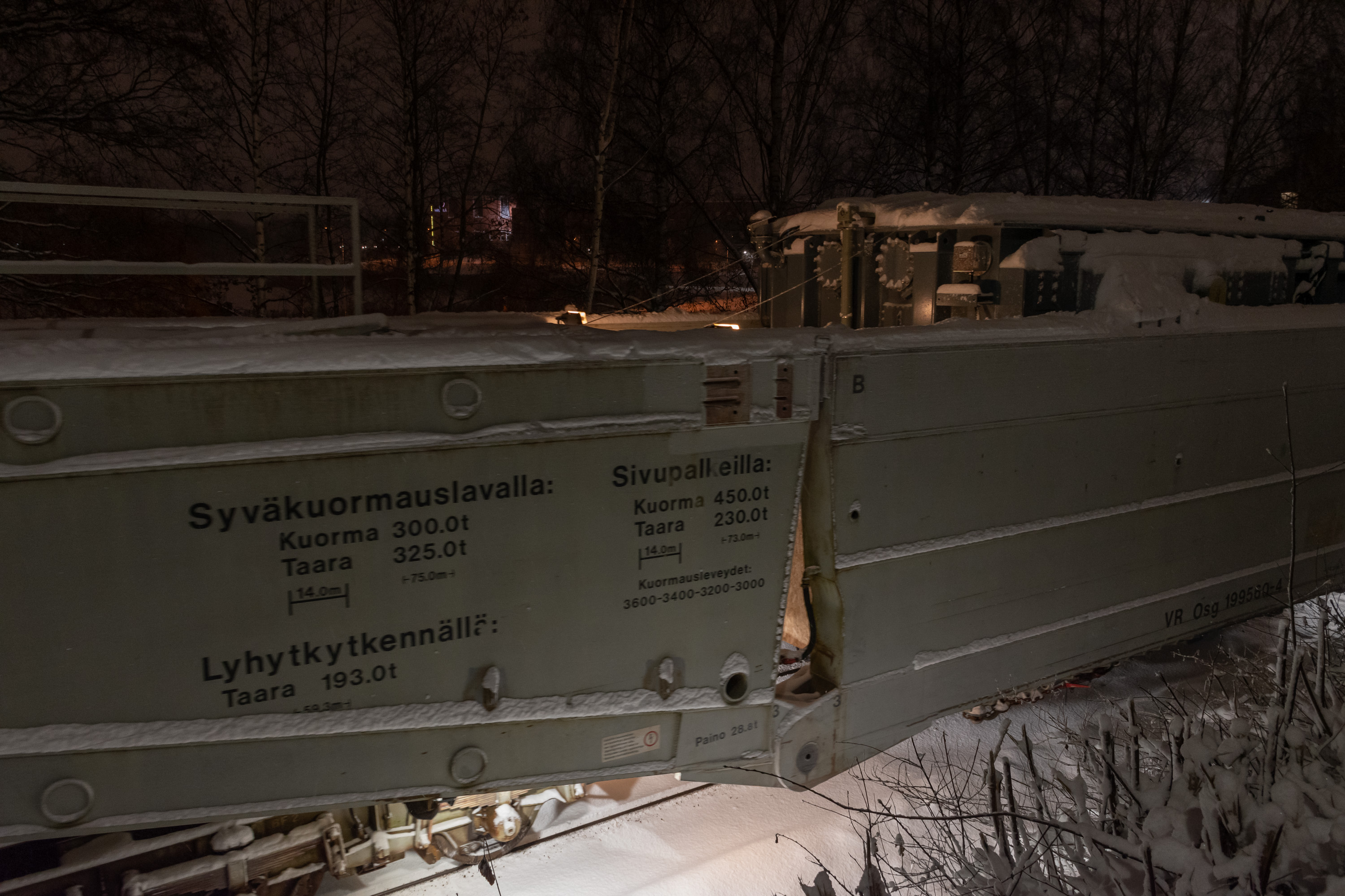 Этот поезд шел до Сейняйоки, и там, похоже, уже и разгрузился — то есть данная перевозка вышла не особо длинной. 2-3 трансформатора в год так возят, не обязательно из Ваасы, из Вуосаари (грузового порта под Хельсинки) например тоже. Подробно про вагон и перевозку трансформаторов VR рассказывают по-фински тут.
