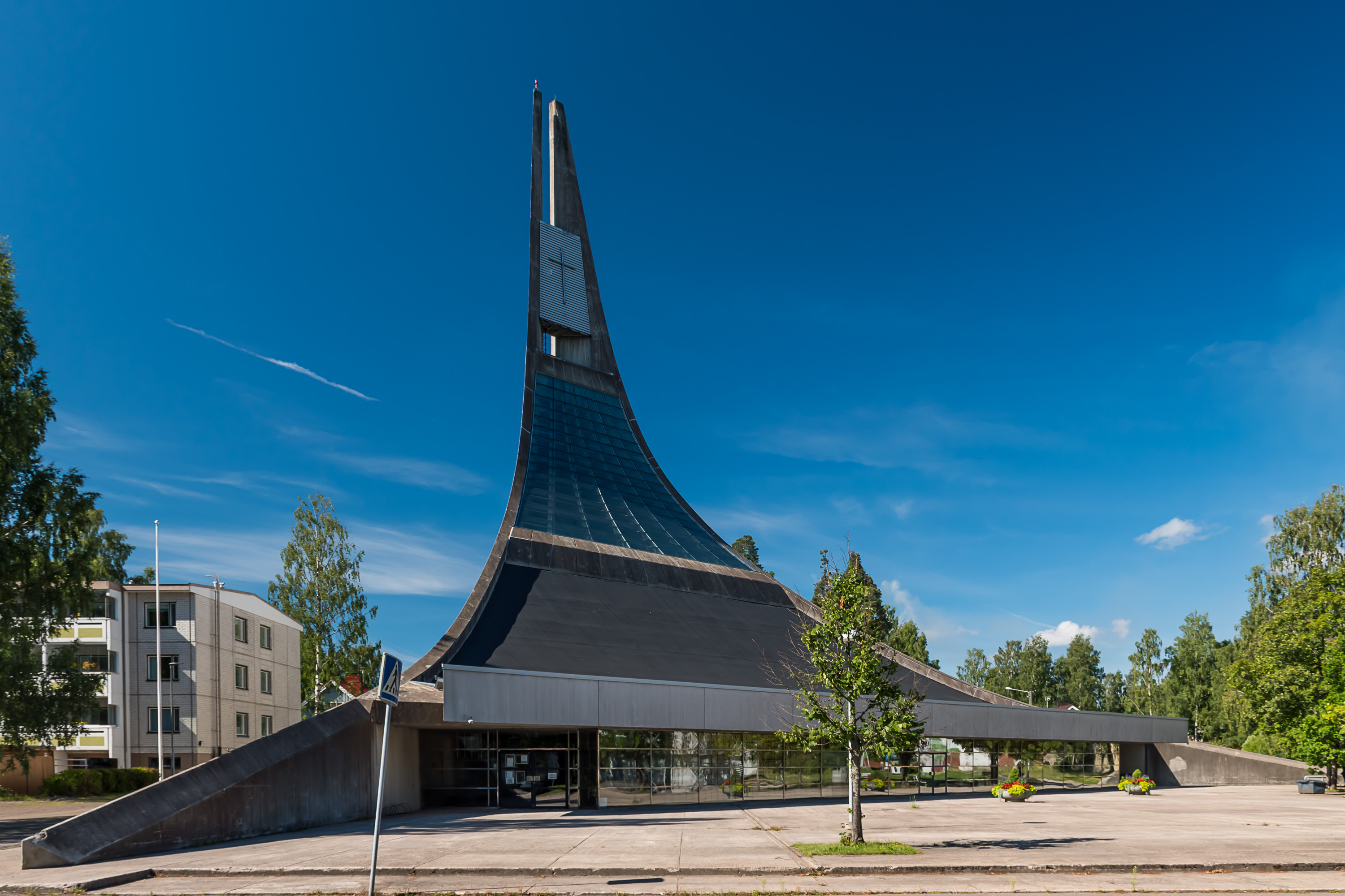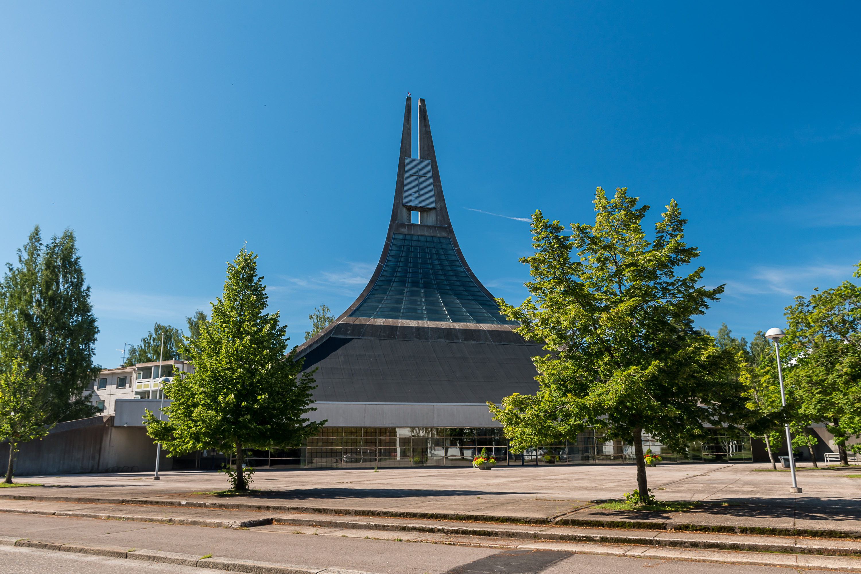 1. Сайменский канал, конечно, самое интересное тут с большим отрывом, но сначала мельком глянем центр. В нем самое крутое — модернистская церковь 1969 года, напоминающий мне формой памятник покорителям космоса в Москве.