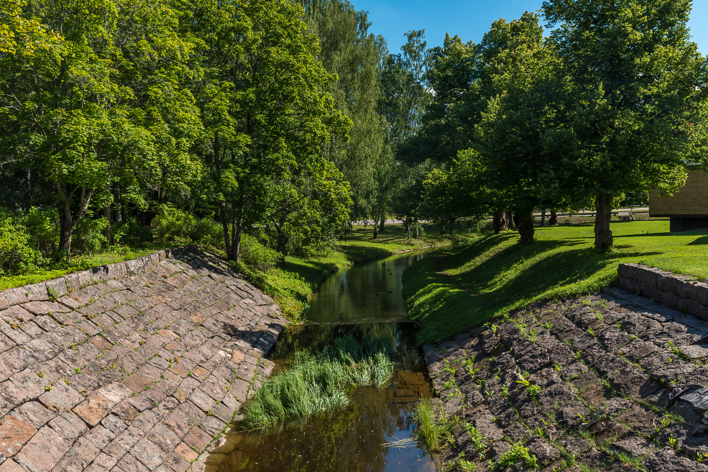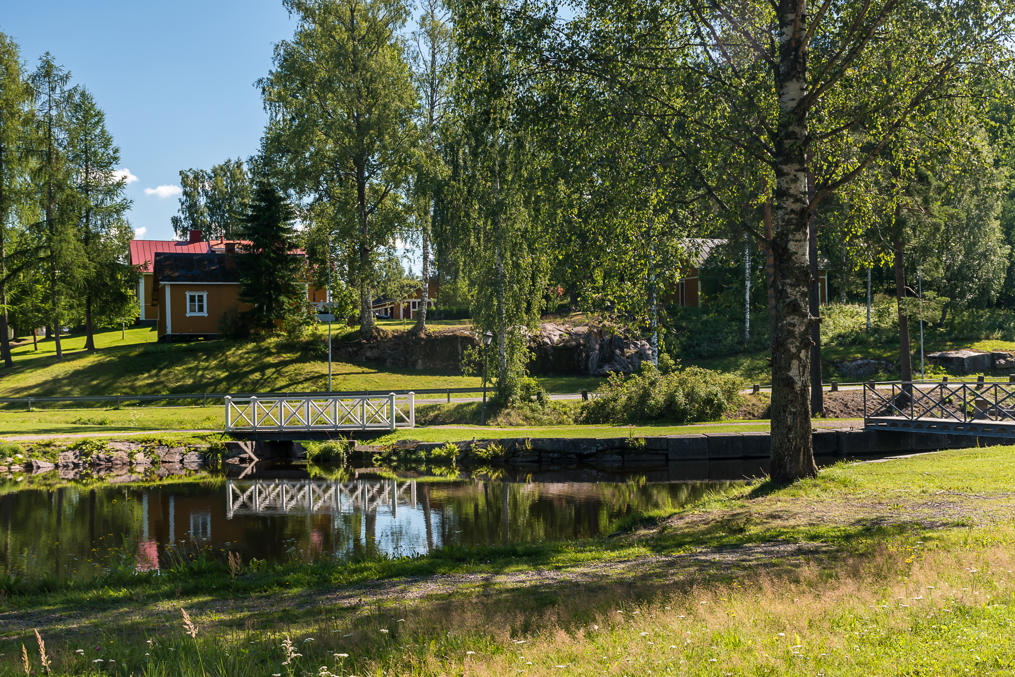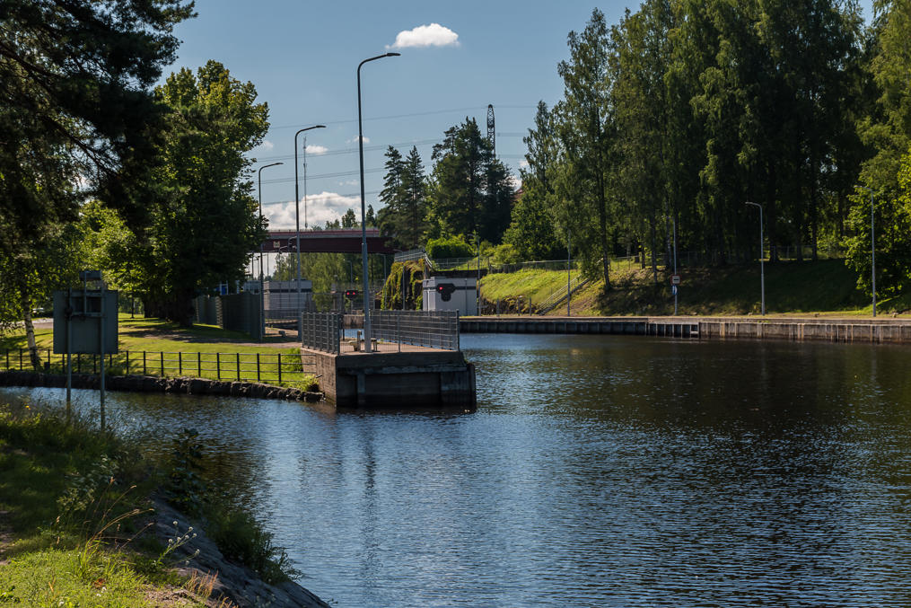 18. Здесь же сохранился один из старых участков канала, со старым шлюзом. Изначально канал был вот такой вот узкий, а шлюзов было целых 28. Тогда, в середине 19 века это, конечно, была самая большая стройка тогдашней Финляндии.