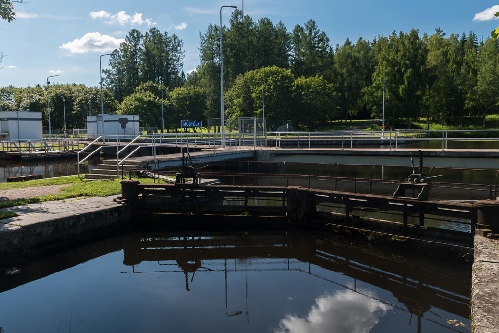 23. Второй шлюз, Мустола (Mustola, фин. Черное), находится всего в километре ниже первого. Здесь тоже сохранился старый шлюз параллельно новому.