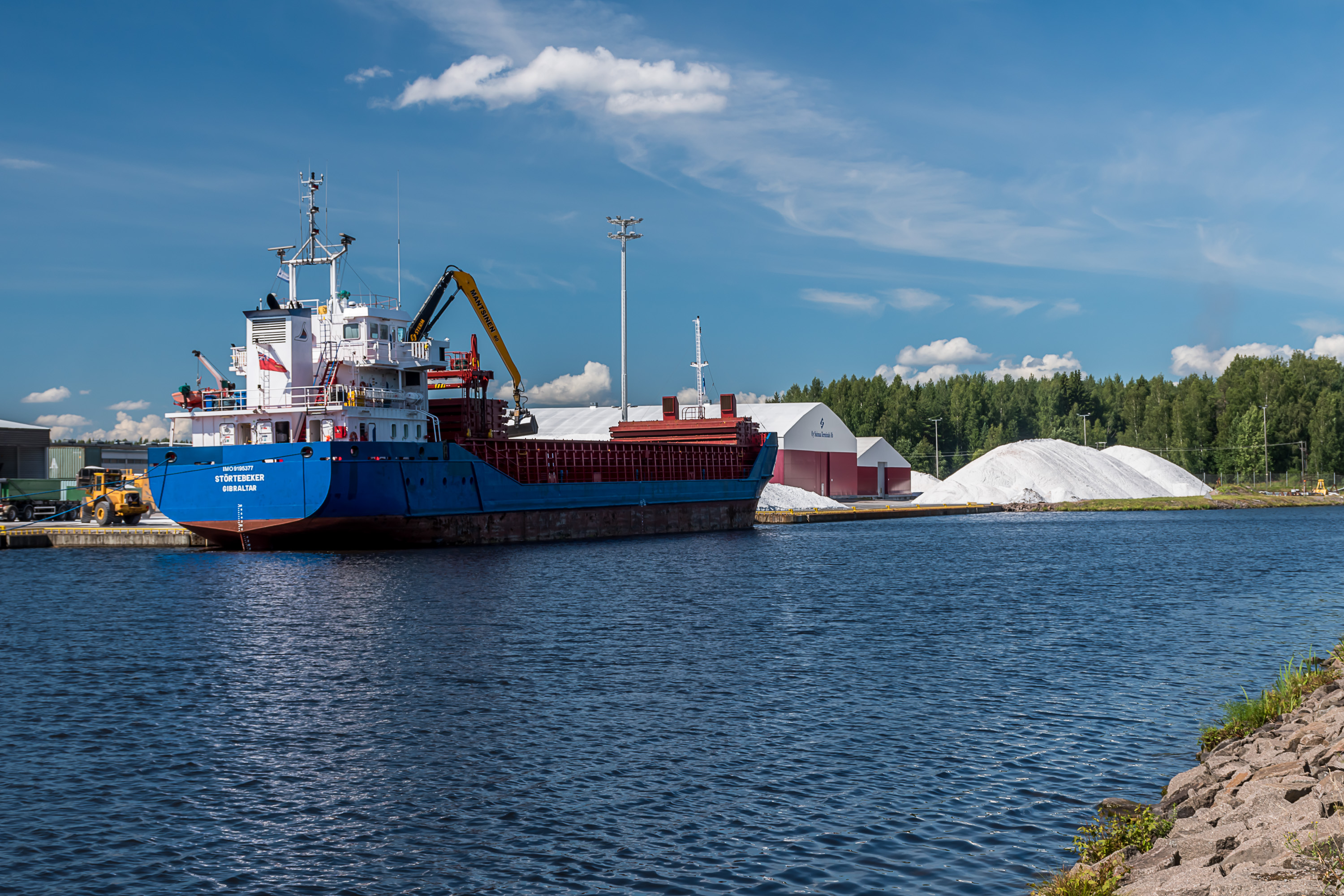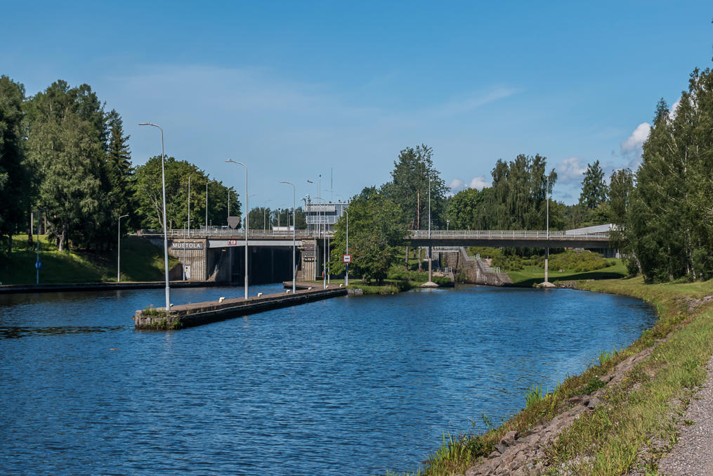 25. А ниже шлюза Мустола — порт Мустола, специализирующийся на насыпных грузах. Порт и часть канала до него используются и сейчас; хотя движения дальше в море нет, по глубоким фарватерам (4.2 м) Саймы вполне себе продолжается.