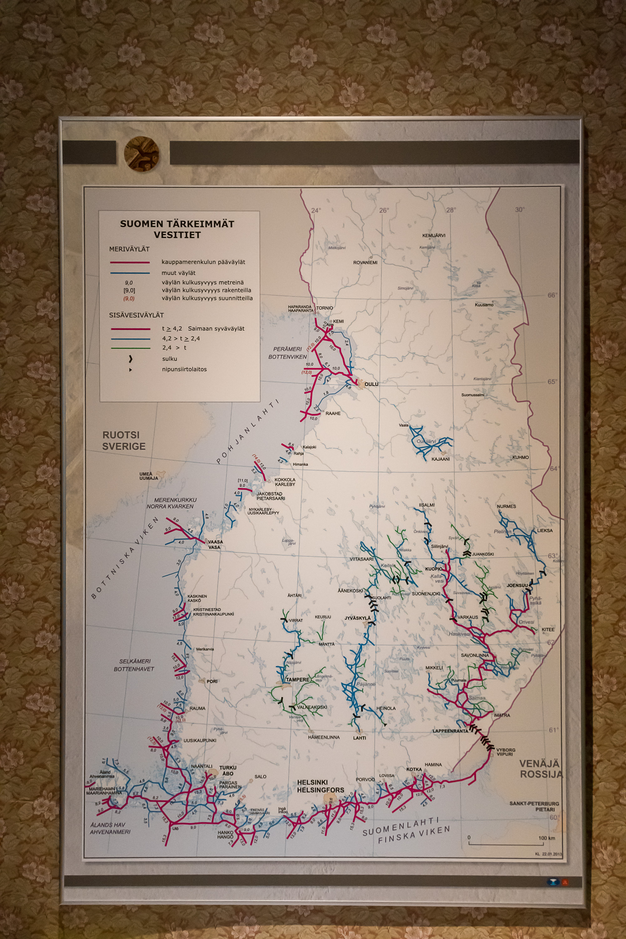 8. Масштабы Сайменской озерной системы можно оценить по этой карте, где отмечены основные официальные фарватеры Финляндии. И здесь же видно, что это единственная озерная система Финляндии, имеющая связь с морем — Сайменский канал; остальные заперты плотинами и порогами, и каналы между ними и Саймой тоже так никогда и не были построены.