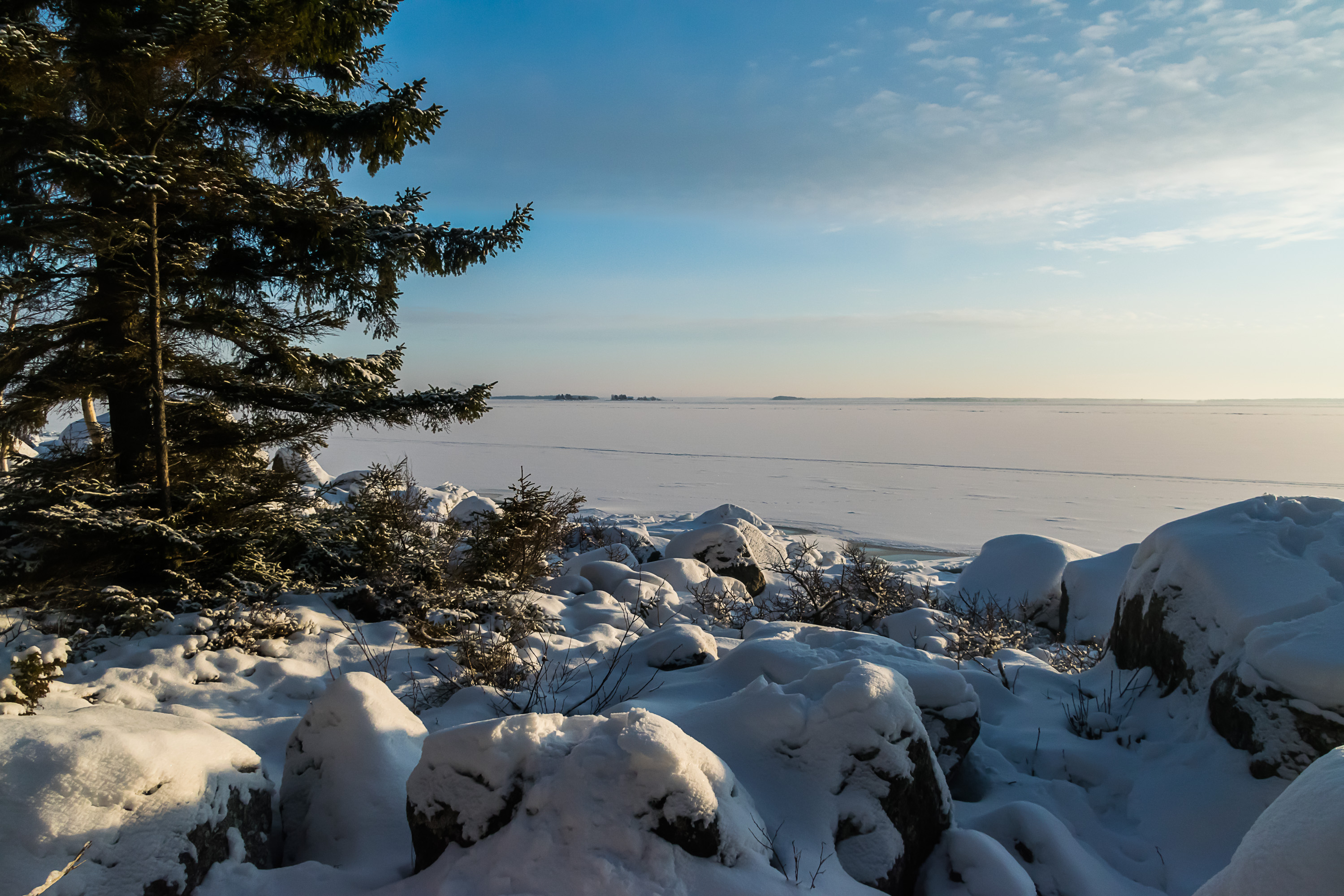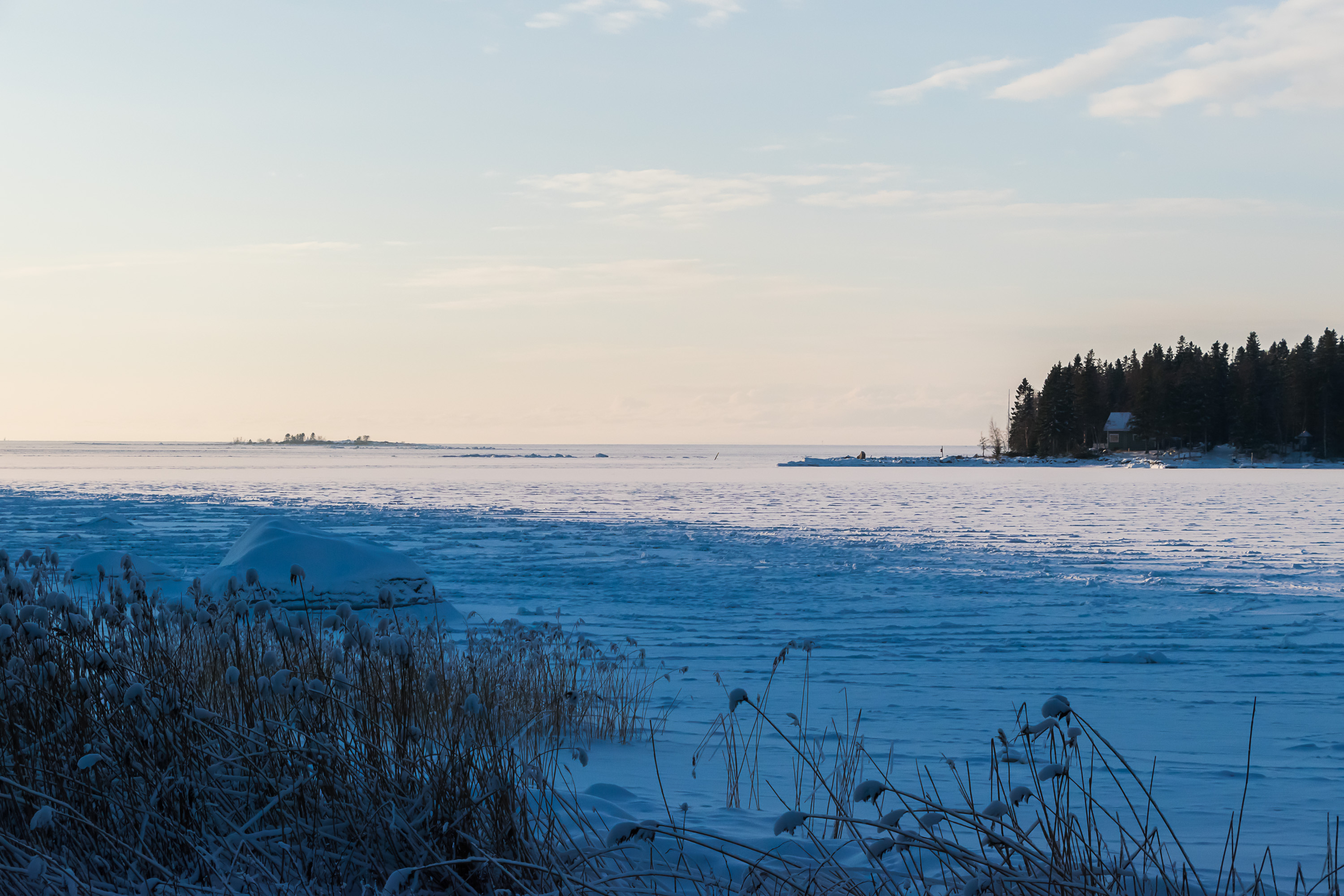 Очень холодная зима 1939-1940 не только стала кошмаром русских на Раатской дороге, но и сделала возможным движение грузовиков по крепкому льду Кваркена. От материка до материка здесь 80 км.