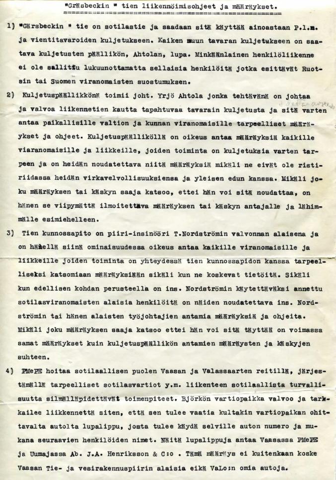 Дорогу пытались также бомбить, но не очень успешно. Ваасу всего бомбили 6 раз за войну, но город и дорога отделались легким испугом. Движение на дороге было преимущественно ночью, без света и на грузовиках, окрашенных в белый.