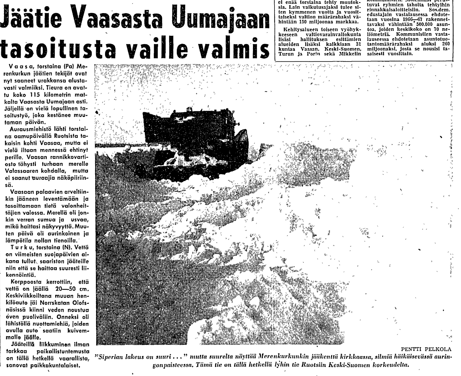 Ледовая дорога через Кваркен изредка использовалась и в другие времена. В частности в 1966-1967 ее открывали по инициативе местного бизнеса. В наше время это уже невозможно, ледоколы держат фарватер посреди Кваркена открытым всю зиму.
