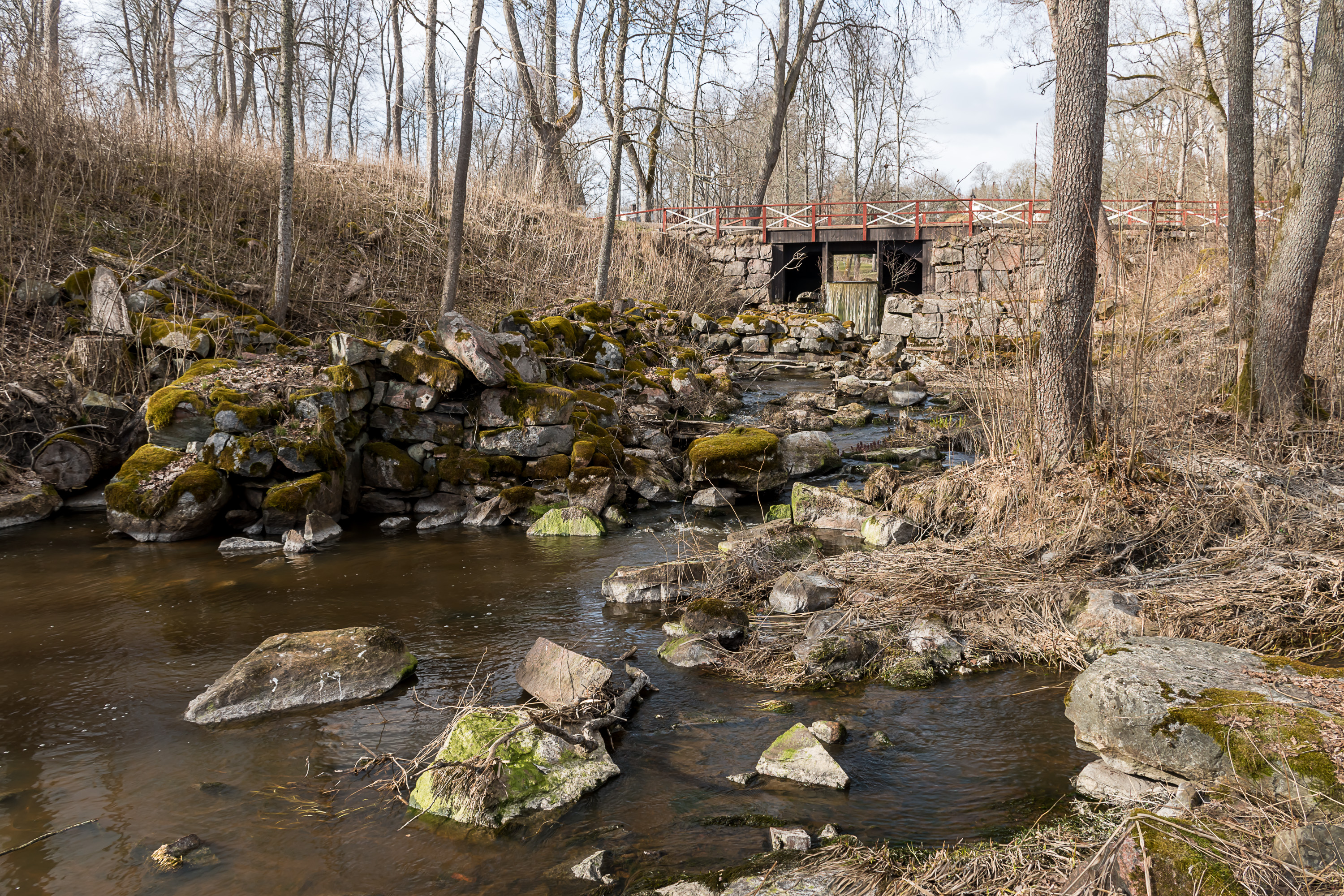 22. Здесь, кажется, была приземистая доменная печь, остатки фундамента которой еще различимы. Не так уж мало подобных заводов в Финляндии сохранилось достаточно неплохо, но доменные печи до наших дней дошли мало где — в Скугбю, Дальсбруке (Таалинтехдасе), вроде бы в Тейо. Целую/восстановленную старую домну на подобном заводе я видел в Швеции в 2024 (Галтстрём).