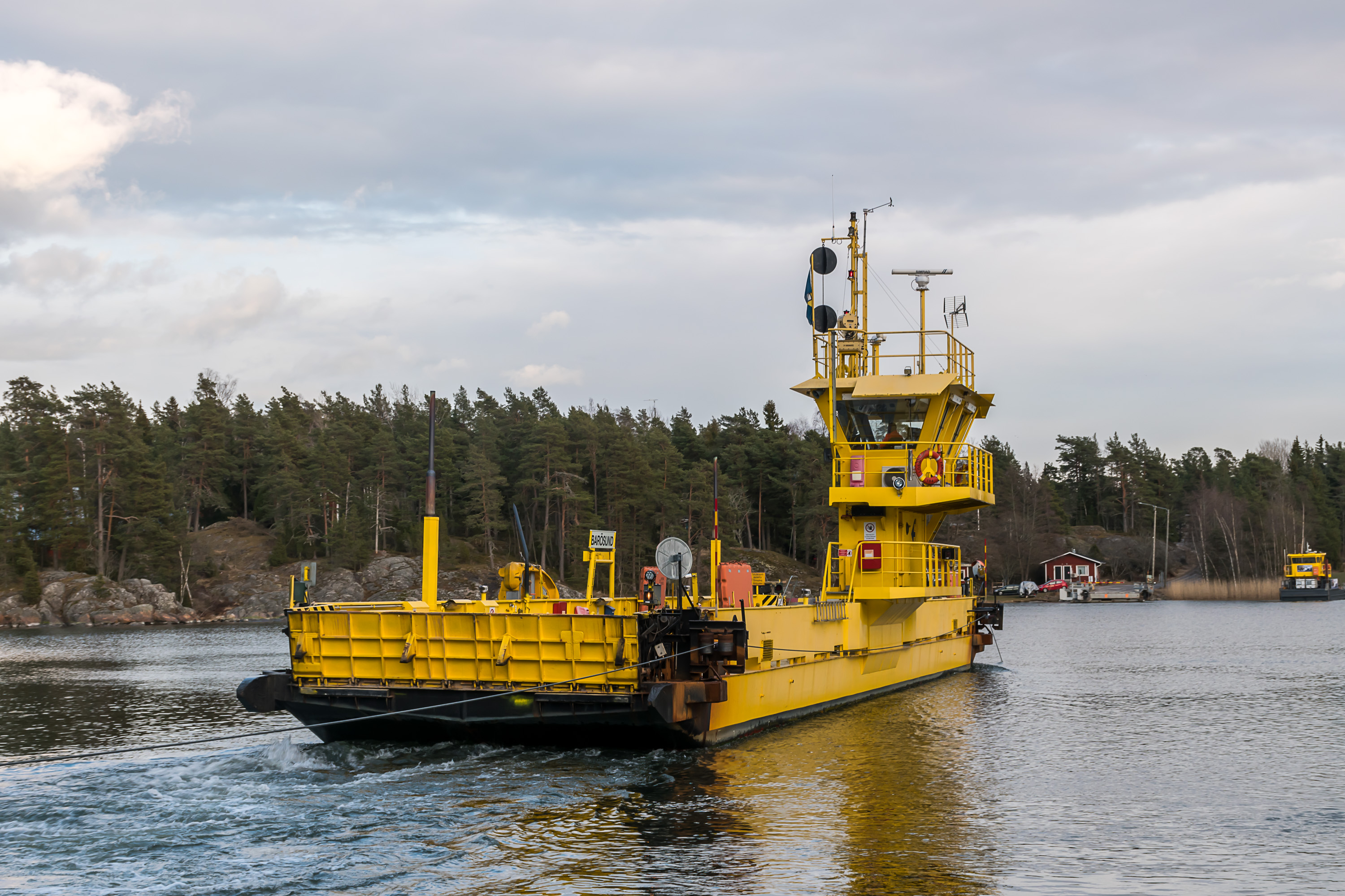 26. Паром маленький, канатный, конечно, через 250-метровый пролив Барёсунд между островами Барёландет и Орсландет. Это типичный маленький автодорожный паром Финляндии, бесплатный.