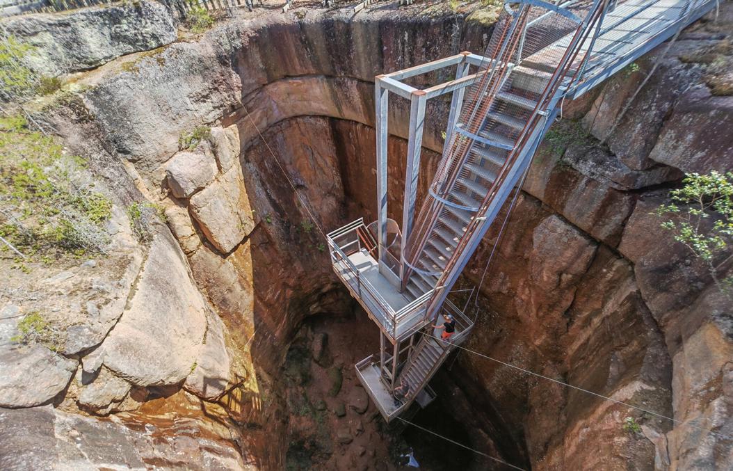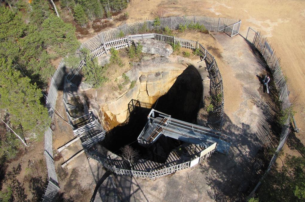 Дожили, уже деньги стали брать за то, чтоб на провал посмотреть. Это под Коскуе (Koskue), первым селом Остроботнии по дороге из Хельсинки-Тампере, Пирунпеся (Pirunpesä) — Чертова берлога.