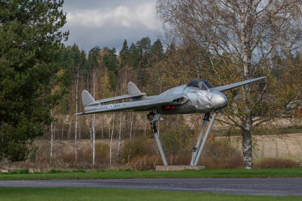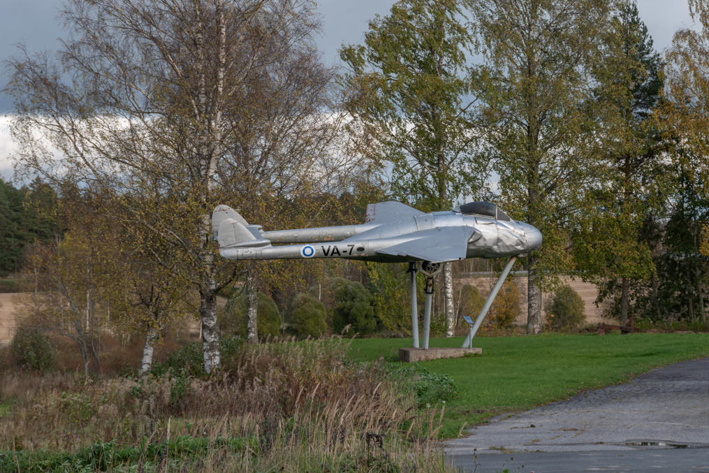 Из неожиданного только на бывшей заправке обнаружился видавший виды истребитель de Havilland Vampire, один из первых реактивных истребителей, британский. В ВВС Финляндии в 1953-1965 было 6 обычных и 9 учебных Вампиров.