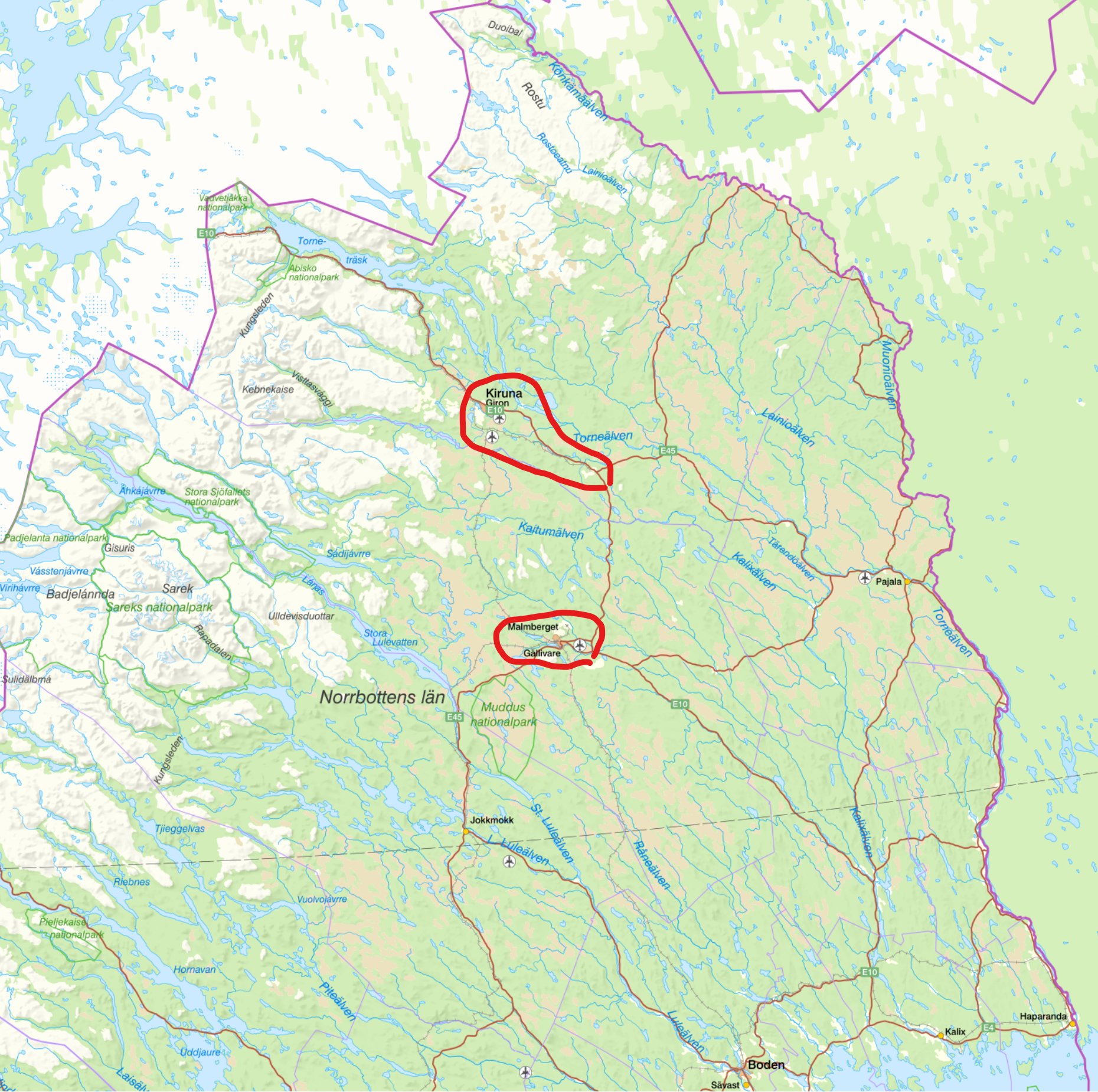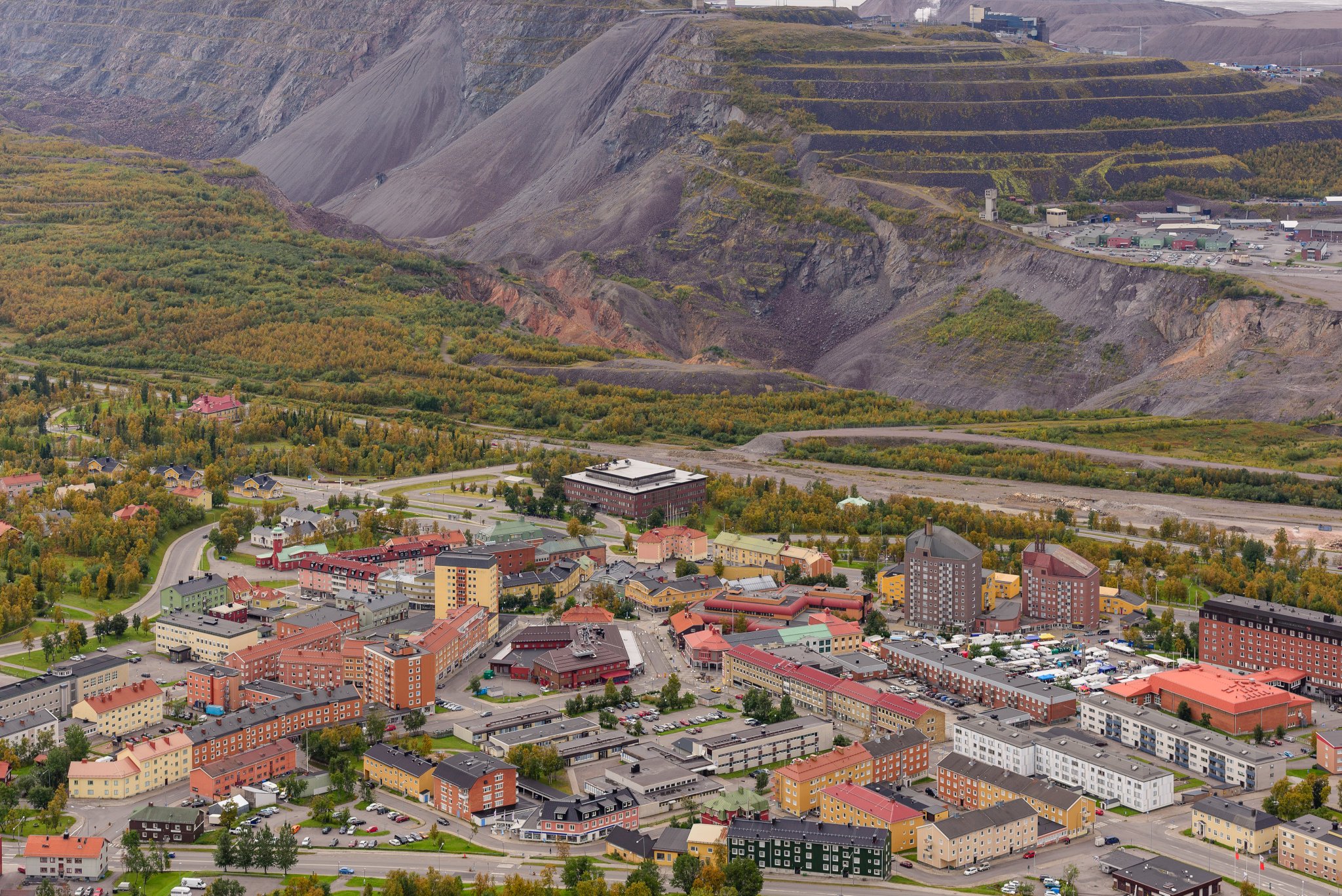 Кируна (Kiruna, от финского kiiruna, тундряная куропатка) — самый северный город в Швеции, населением 17.5 тыс., построенный при огромных железных рудниках. Про второй город при рудниках, Елливаре, я когда-то писал, но Кируна на самом деле куда значительнее. Про Кируну вы, может быть, даже слышали, что это город, который переезжает, из-за разрастающейся под ним шахты. Ну, вот, это — новая Кируна, по состоянию на сентябрь 2023.
