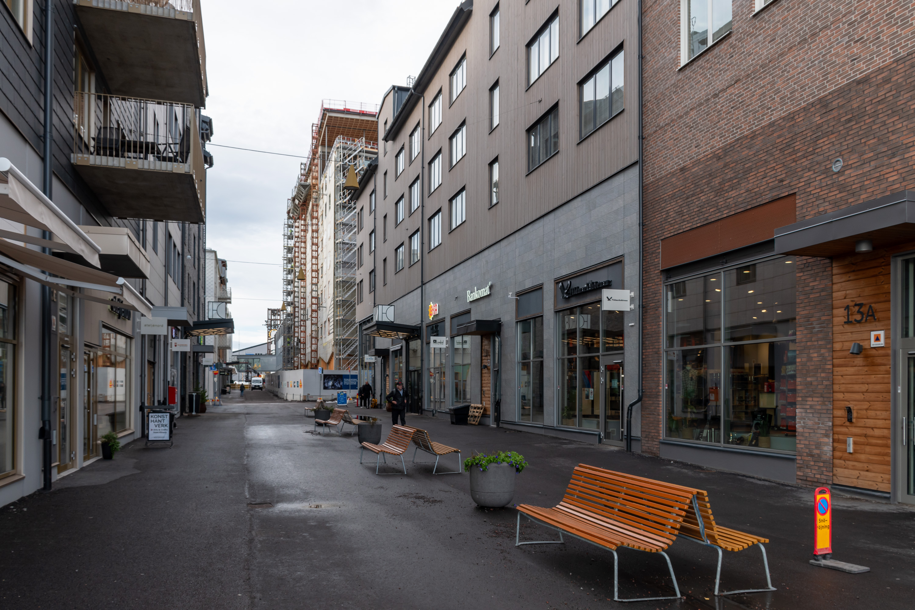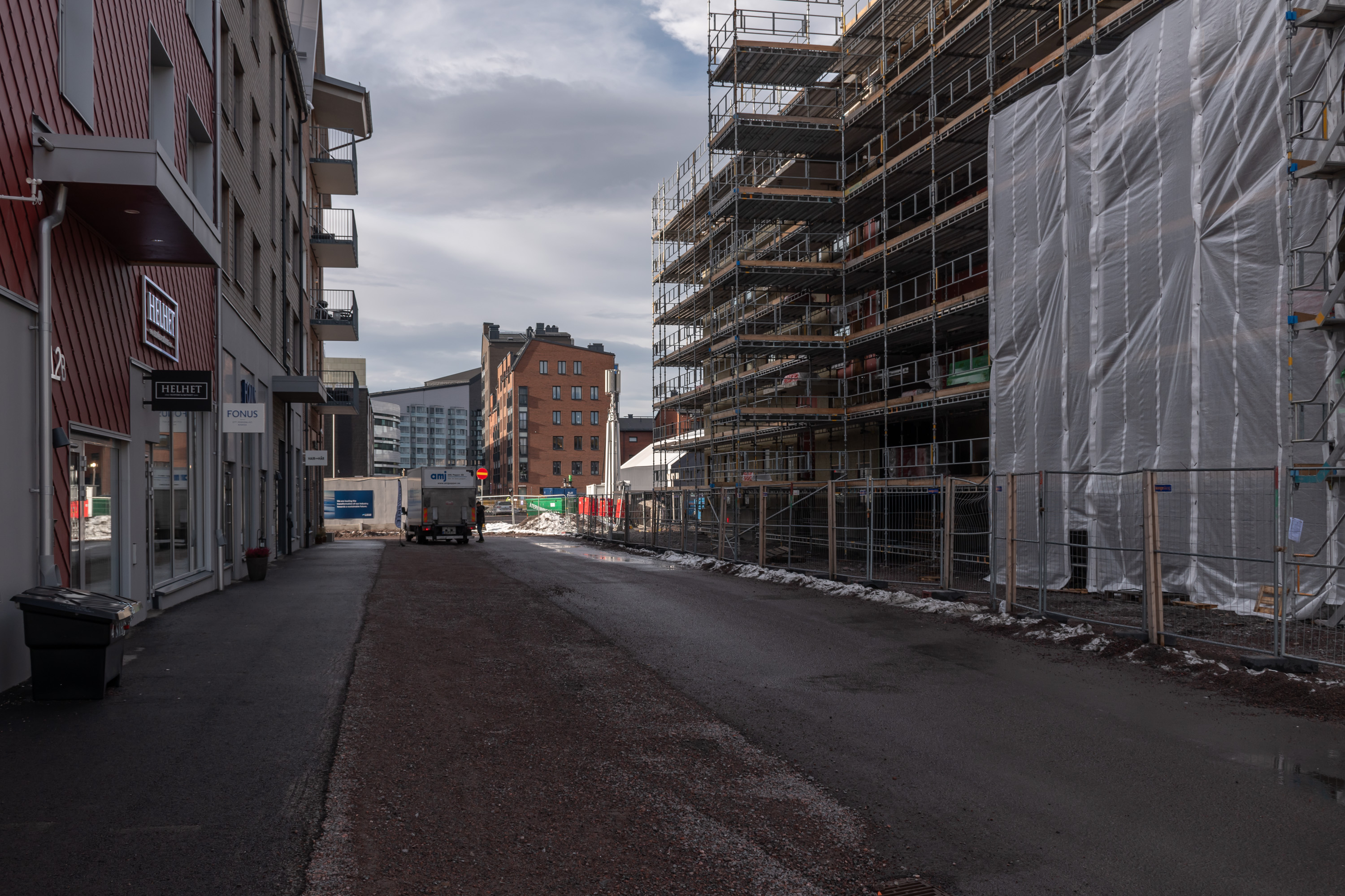 Новый центр строится в типичном современном стиле, плотные многоэтажки, узкие полупешеходные улочки (хотя зимой пешком тут гулять такое себе). Парковки за краем города и под домами. Не очень фанат такой застройки, хотя дома достаточно симпатичные.