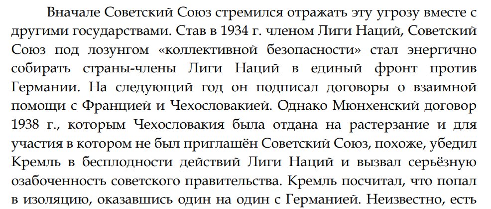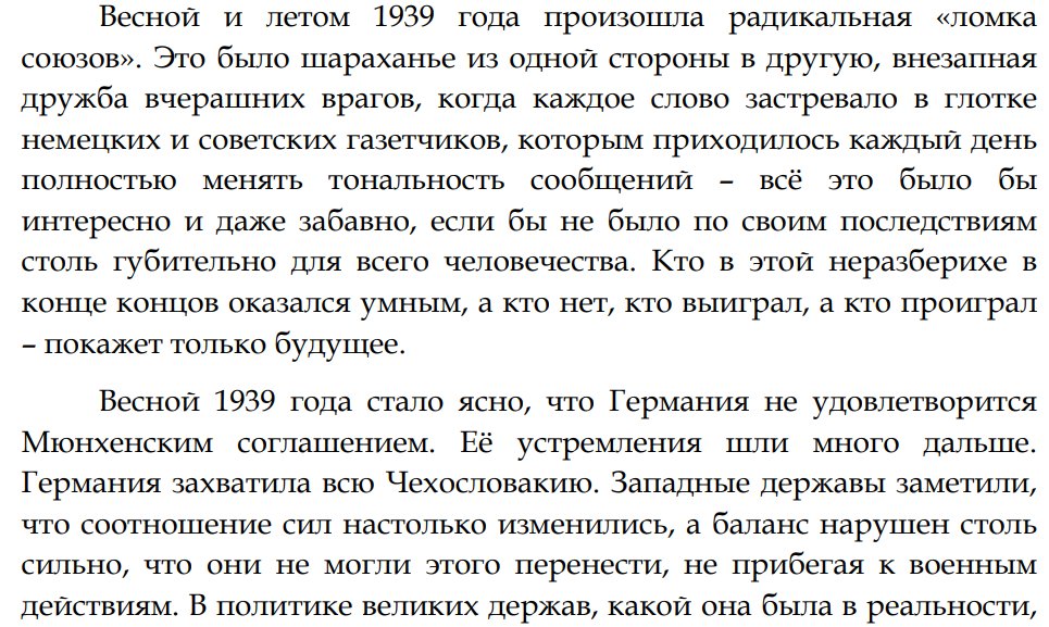 Мюнхенский договор с Германией трудно видеть иначе как глубочайшую ошибку; выводы из него сделала не только нацистская Германия, но и СССР.