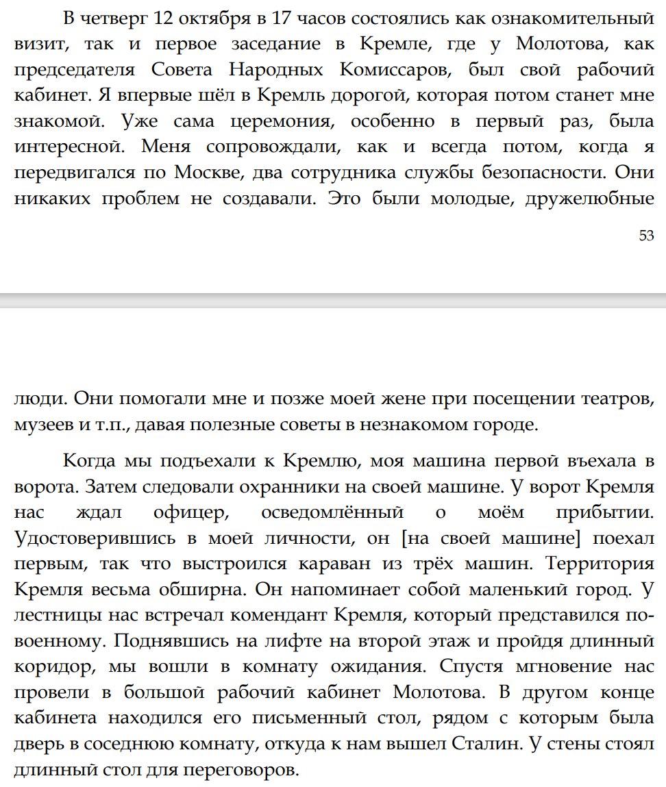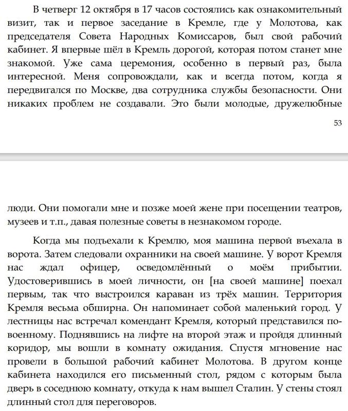 Паасикиви впервые лично видел и Сталина, и Молотова, и ему, конечно, было любопытно посмотреть, что это в реальности за люди. Сталина после этих переговоров он видел всего раз в жизни, а Молотова еще много. Переговоры тоже были вполне корректные, без хамства и личного давления.