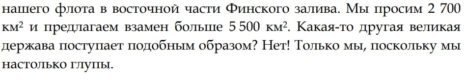 "Вам и самим невыгодно, что вы так близко к нам". Мне нравится, как сразу с барского плеча границу Петра I (примерно совпадающую с границей после 1944) сразу скостили до границы, примерно проходящей по линии Маннергейма.