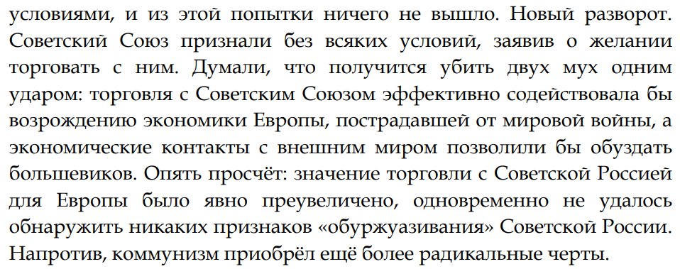 Западные страны в 1920-х постепенно худо-бедно нормализовали отношения с СССР и начали с ним торговать, надеясь, что экономические контакты приведут к какому-то смягчению режима. Эффект вышел скорее противоположный.