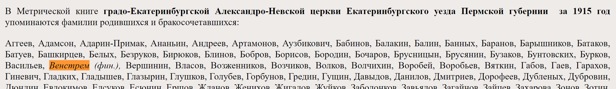 Про Оренбург гуглится учитель географии Александр Венстрём, работавший там в первой половине 20 в., видимо, родня. В Екатеринбурге гуглится, что в 1915 родился или бракосочетался "Венстрем (фин.)", это уже, может, и тот самый Андрей.