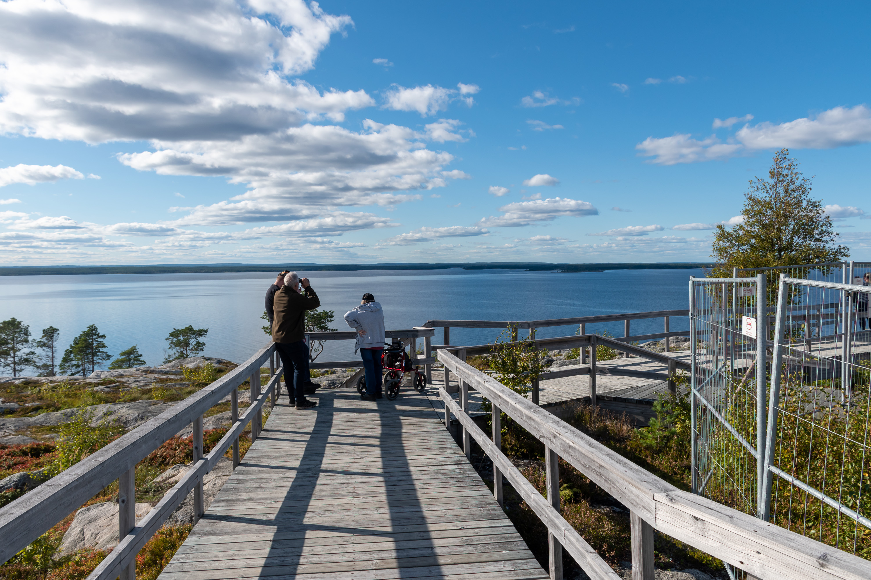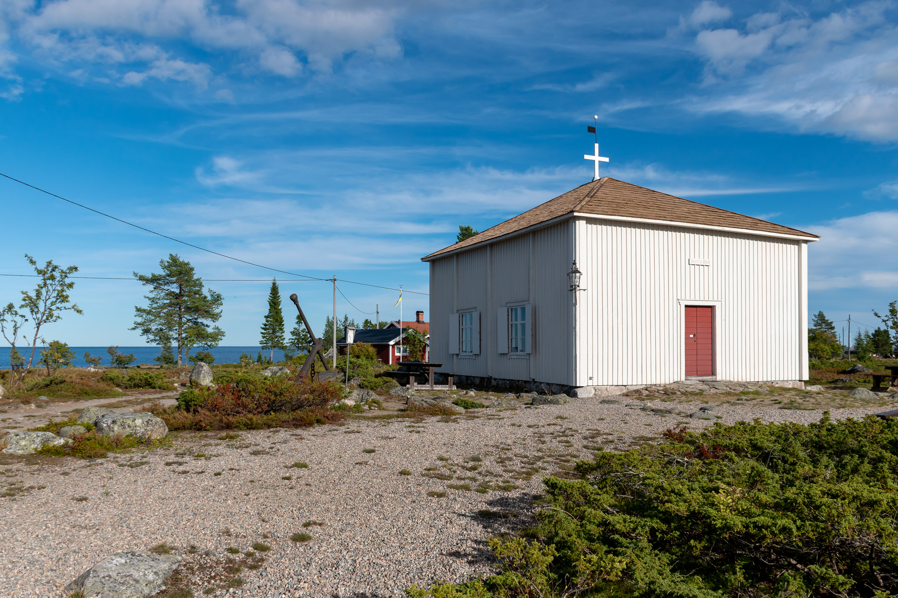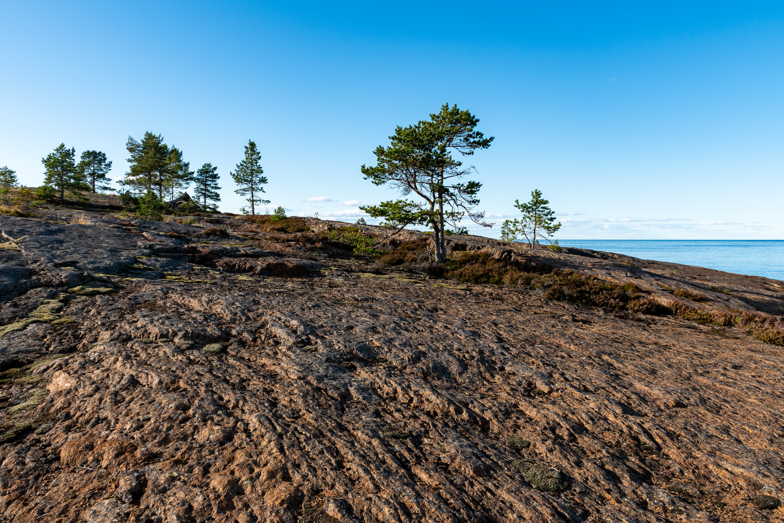 Мыс поднимается из моря примерно на 50 м. На финской стороне Ботнии нет и близко таких скал. На скале стоит маяк (ремонтировавшийся, когда я тут был в августе 2022) — башни для него строить нужды не было, так что он маленький совсем.