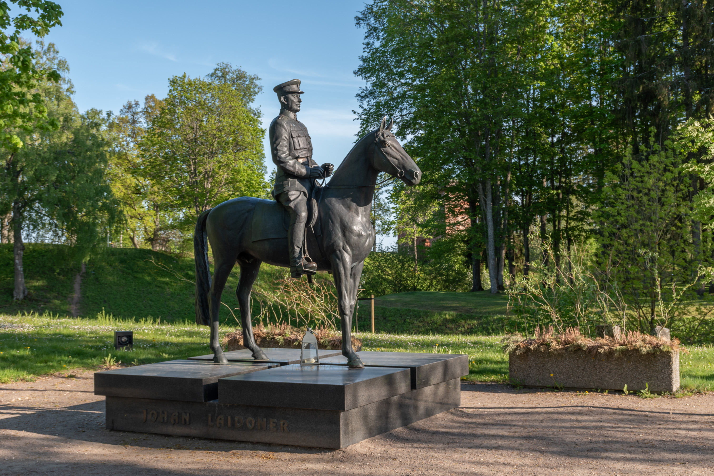 Лайдонер (строго говоря, родившийся не в Вильянди, а в Вииратси совсем рядом) так же, как и Маннергейм, был офицером в царской армии, и так же после провозглашения независимости в 1918 был уполномочен возглавить эстонскую армию в Освободительной войне. В Эстонии это была действительно война за независимость, против российских большевиков — в отличие от Финляндии, где война была в основном все-таки именно гражданской. Но так или иначе Лайдонер, как и Маннергейм, после этой войны отошел от дел (ну, не полностью, в политике все-таки остался).