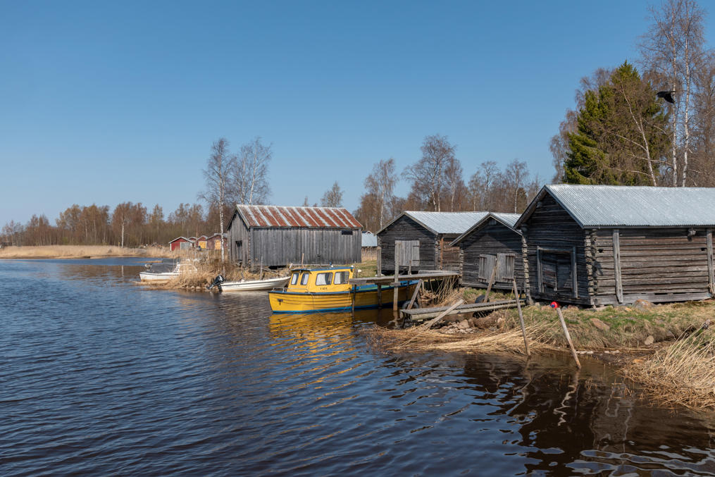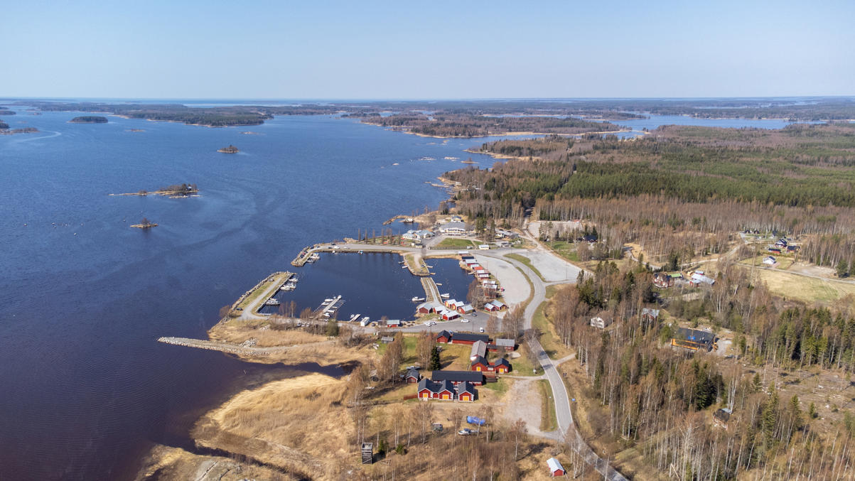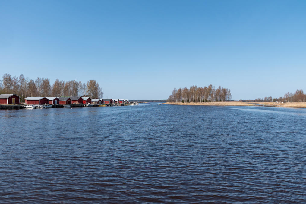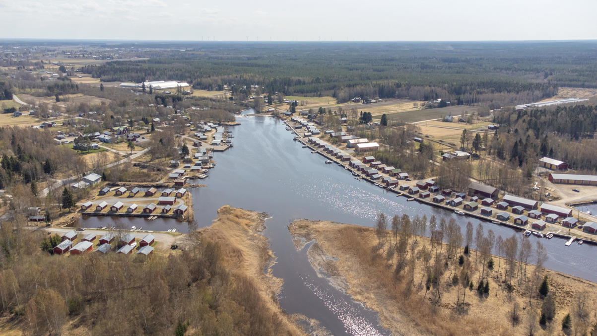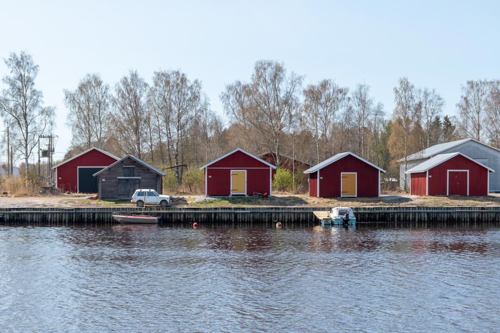 Достопримечательностей в Малаксе, к сожалению, особых нет на самом деле — поэтому я и не заезжал сюда раньше. Это гавань Оминне (Åminne) в устье реки Малакс (Malax), с огромным количеством лодочных сараев и хорошо видным с воздуха большим архипелагом дальше в море. К Малаксу относится также редкий для Ботнического залива населенный остров, куда ходит паром, Бергё (Bergö), про который я писал отдельно.
