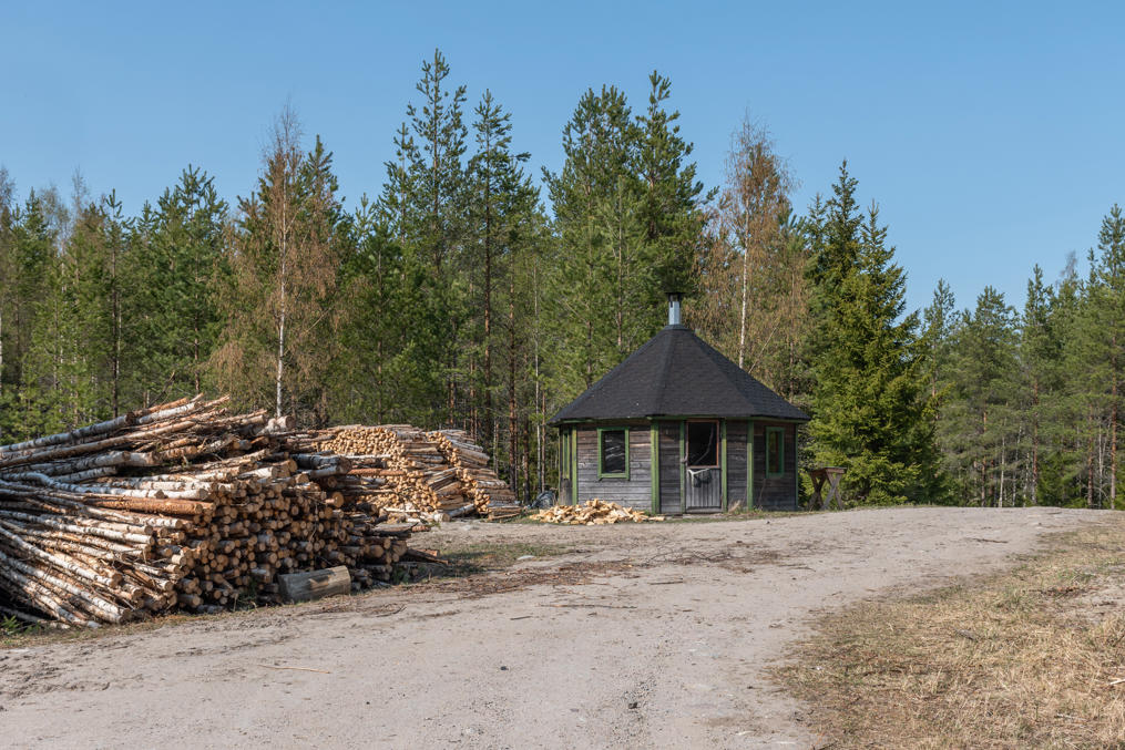 На велике я уехал довольно далеко от села. На нем прикольно по лесу кататься по всяким мелким дорогам, таким, что даже знаки от руки нарисованные. В этот раз сразу два довольно капитальных места для привала встретились. Такие обычно для походников строят у пеших маршрутов, а тут у дорог — явно для охотников.