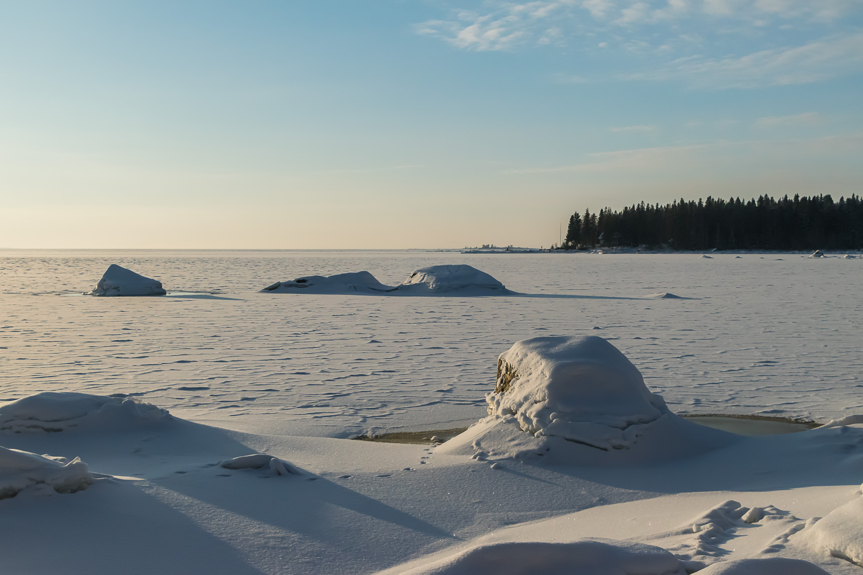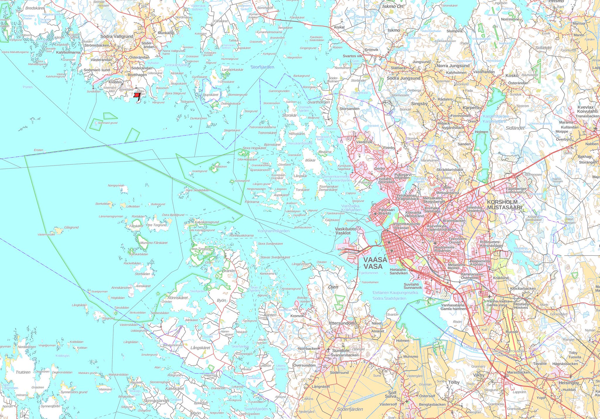 До Ваасы не очень далеко, но из-за архипелага видно только ТЭЦ Васкилуото. Зимой по морскому льду сюда относительно несложно дойти на лыжах, ближе будет, чем на машине ехать.