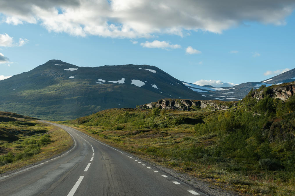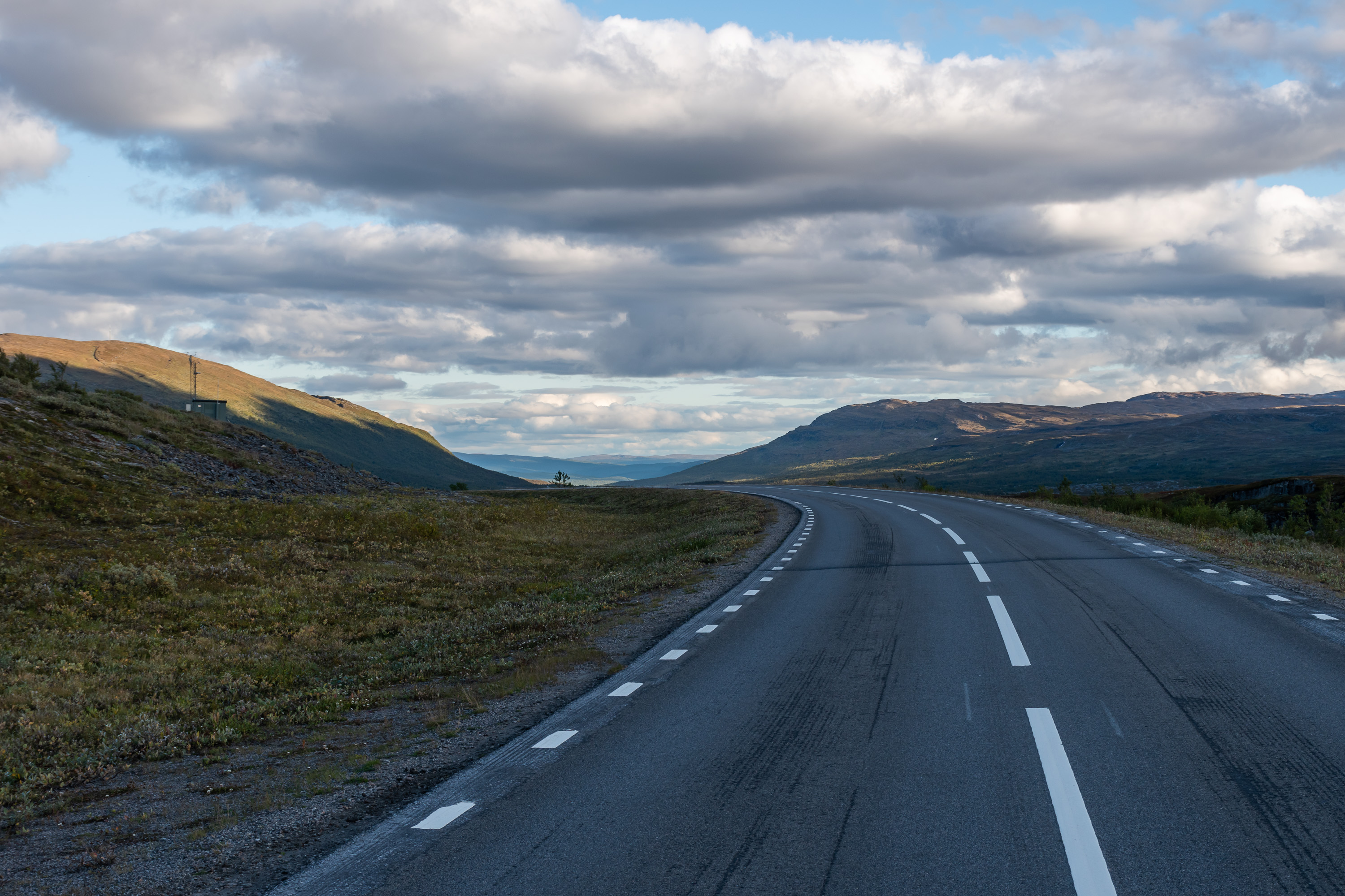 12. Параллельно ж/д идет тоже довольно пустынная автодорога E45; Арвидсъяур стоит на ее пересечении с дорогой от Ботнического залива, от города Шеллефтео, через горы в район Будё в Норвегии — трассой 95, так называемой Серебряной дорогой, ведущей в сторону старых Насафьелльских серебряных приисков. На фото ее горная часть.