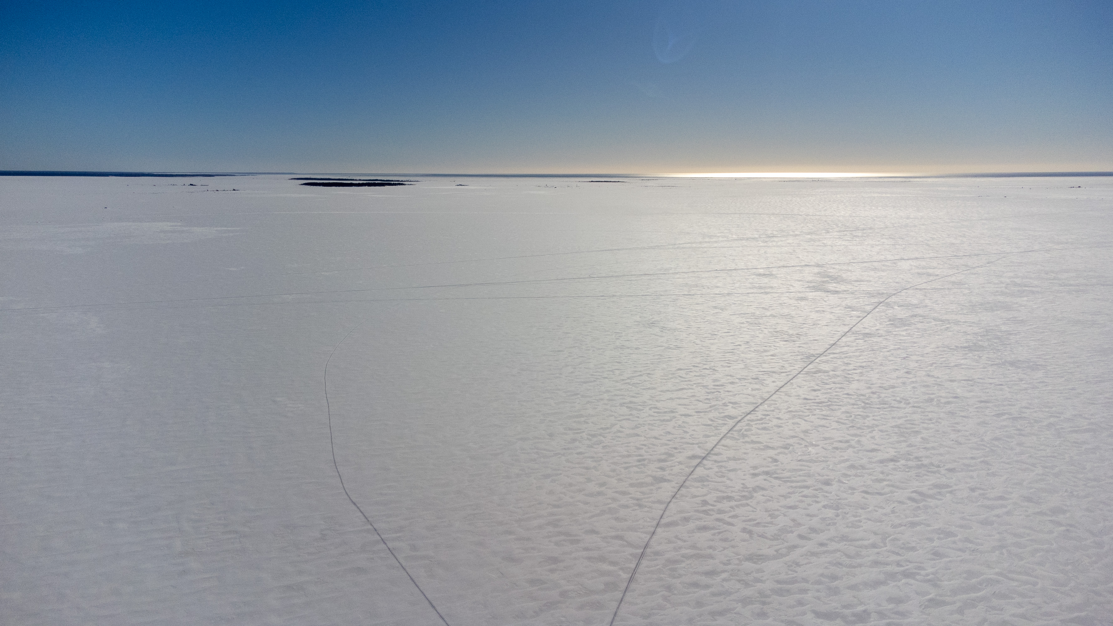 12. По льду активно ездят на снегоходах, море замерзшее на много километров вокруг.