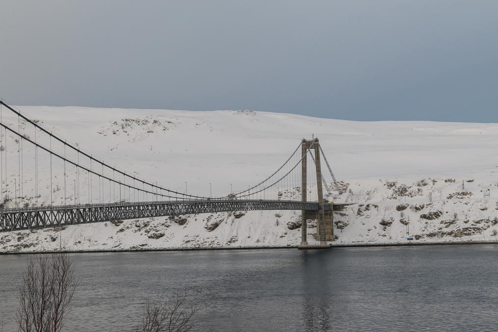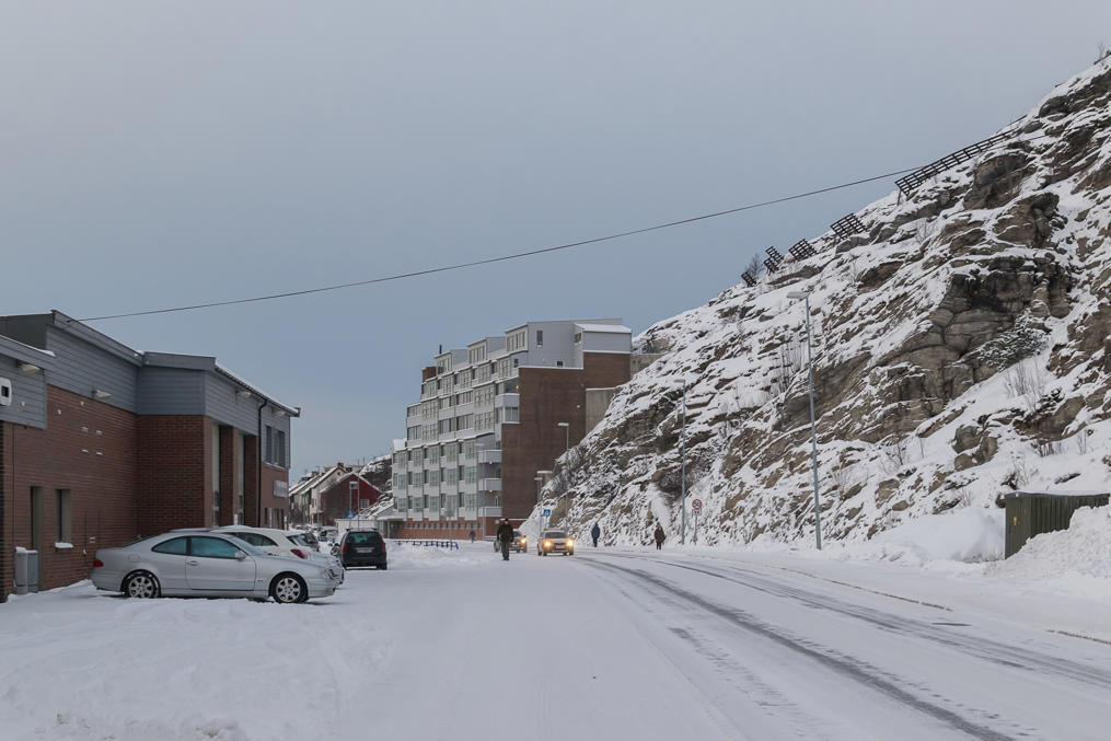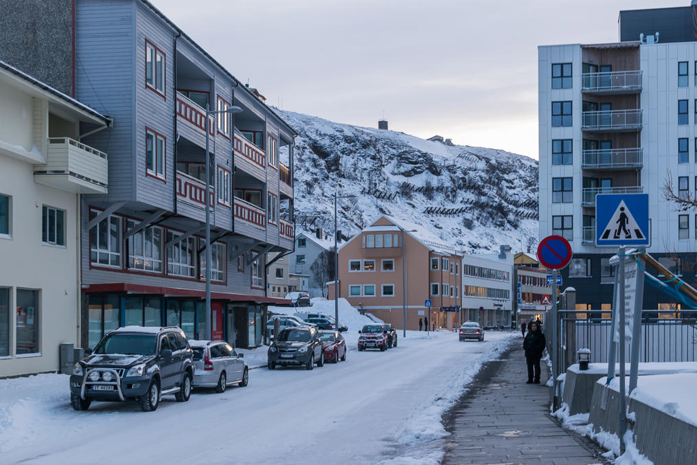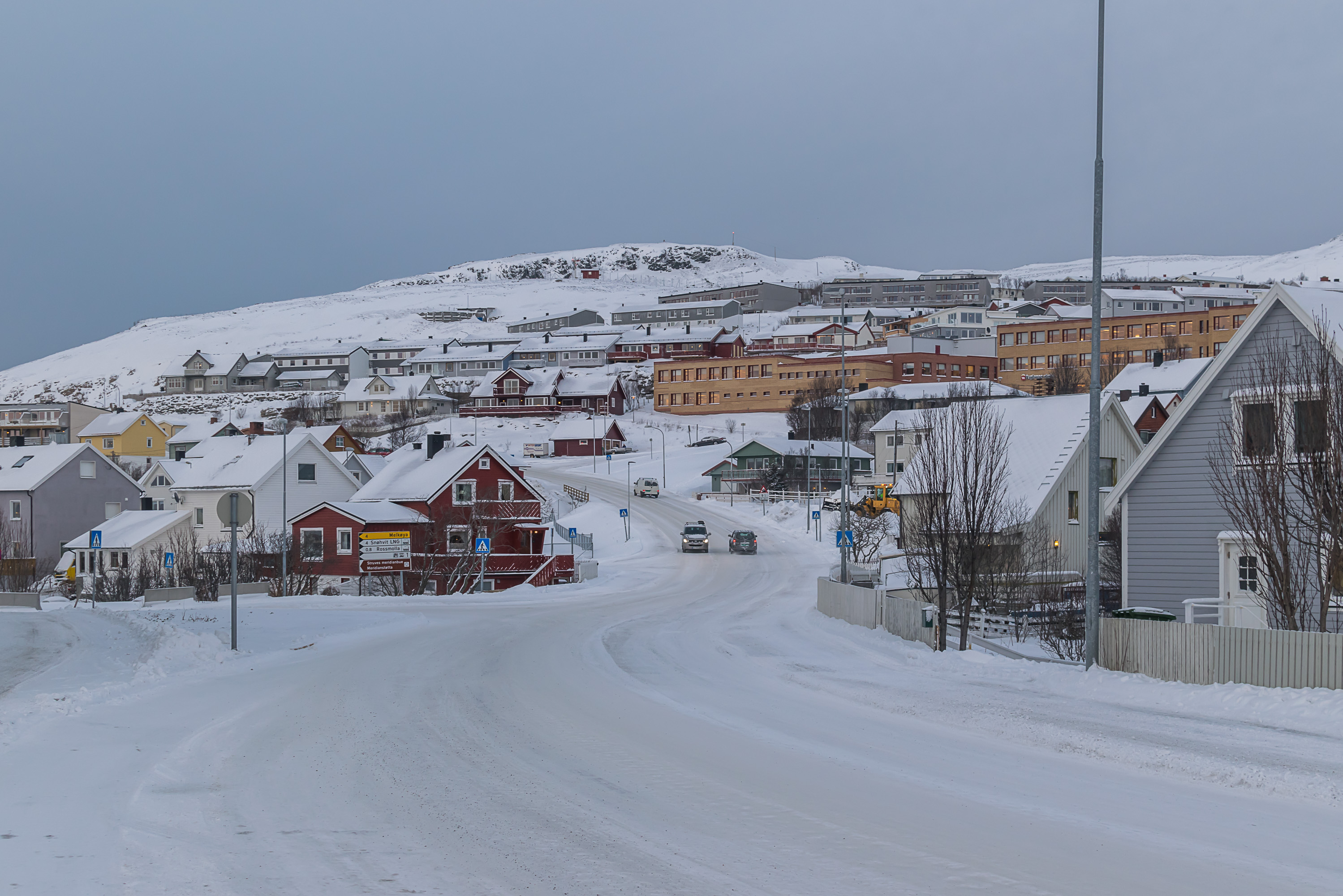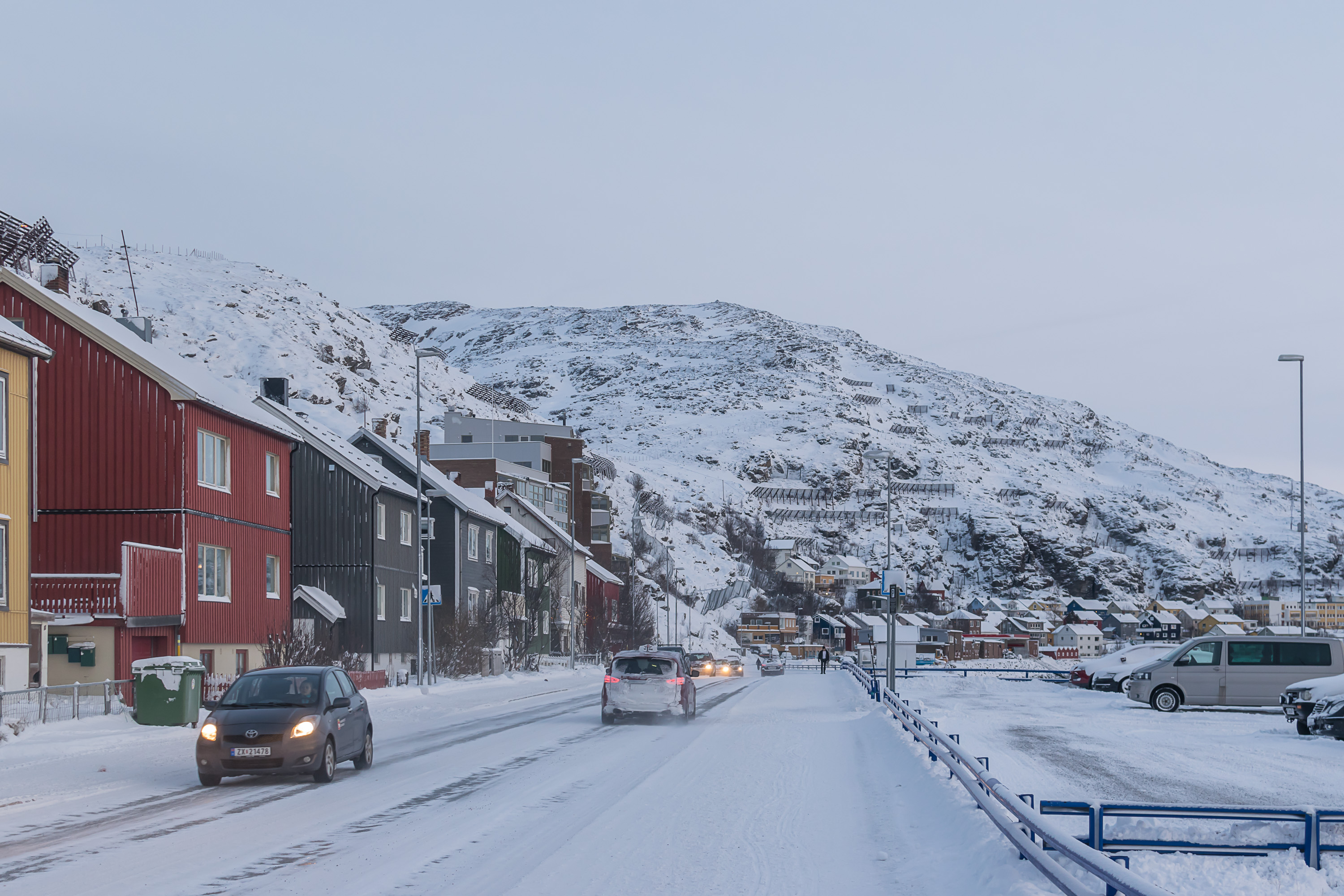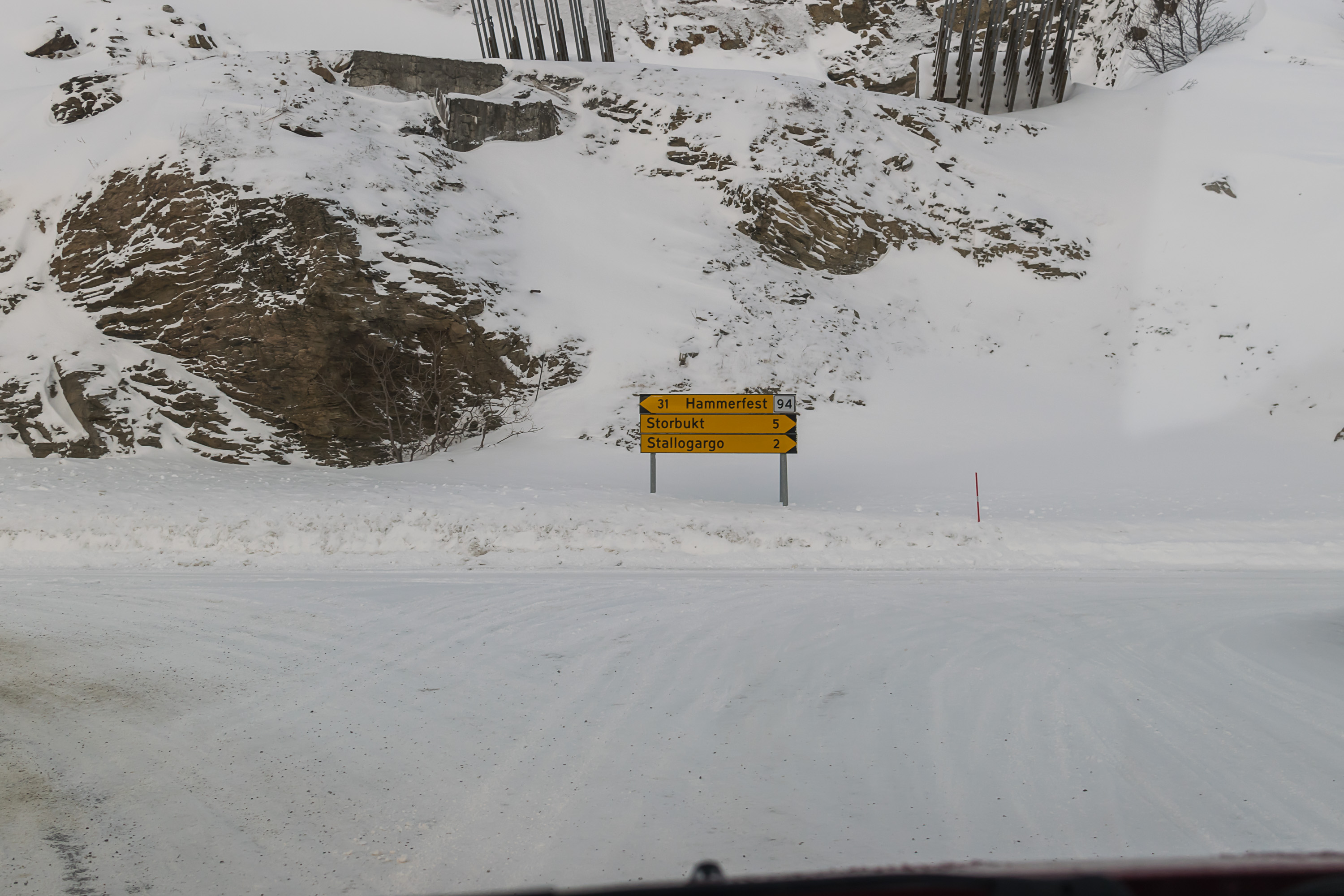 Потом — через мост на остров Квалёйя (Kvaløya, норв. Китовый остров) и берегом этого острова. Хаммерфест стоит на севере Квалёйи.