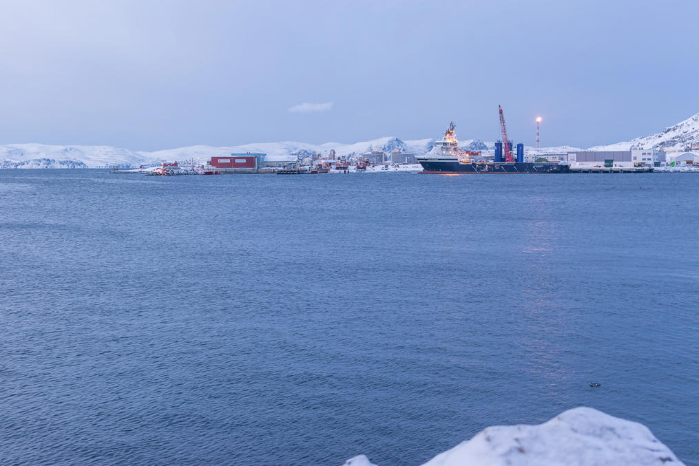 Завод СПГ здесь виден на заднем плане, на острове Мелкёйя. Само месторождение, Снёвит (Snøhvit, норв. Белоснежка) находится в Баренцевом море в 140 км отсюда, оттуда качают на завод по газопроводу.