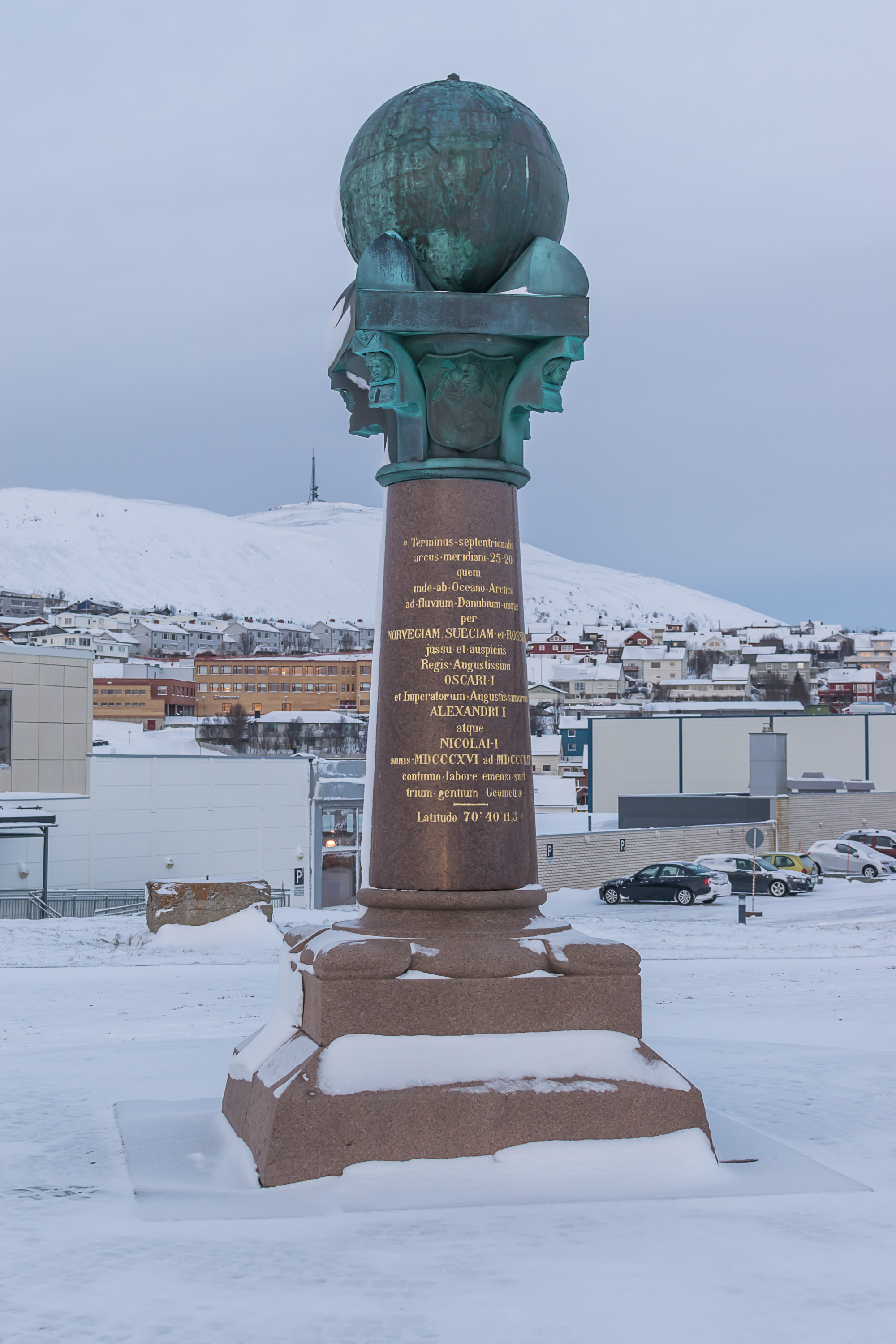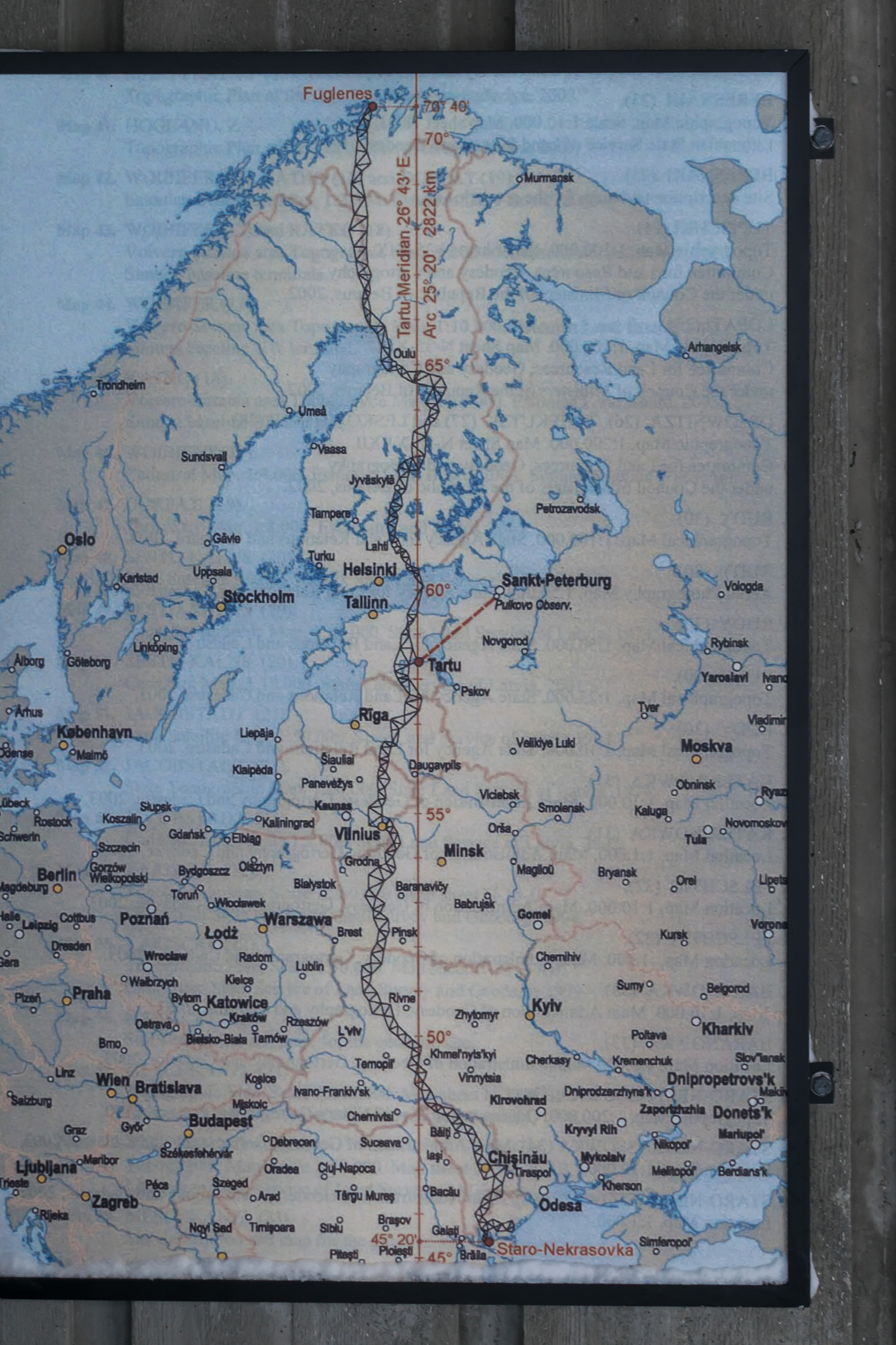 А еще здесь на мысе Фугленес кончается у моря построенная в первой половине 19 в. геодезическая дуга Струве, рядом точек которой можно полюбоваться и в Финляндии. Так, с помощью пары сотен геодезических пунктов, когда-то точно измерили Землю.