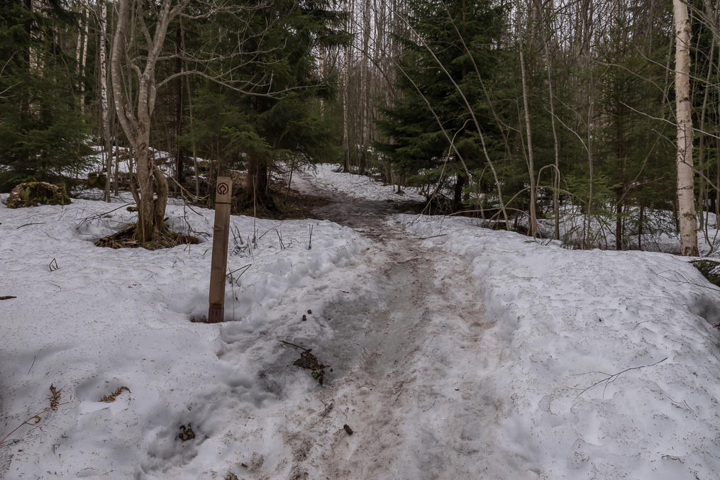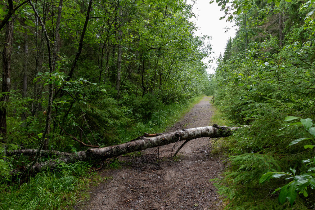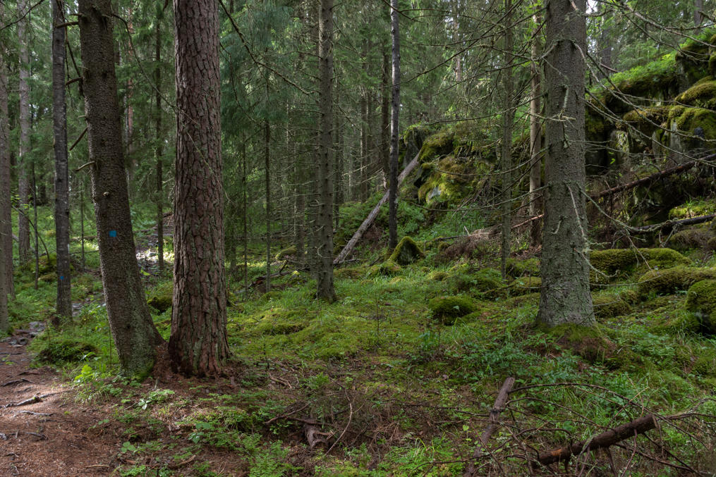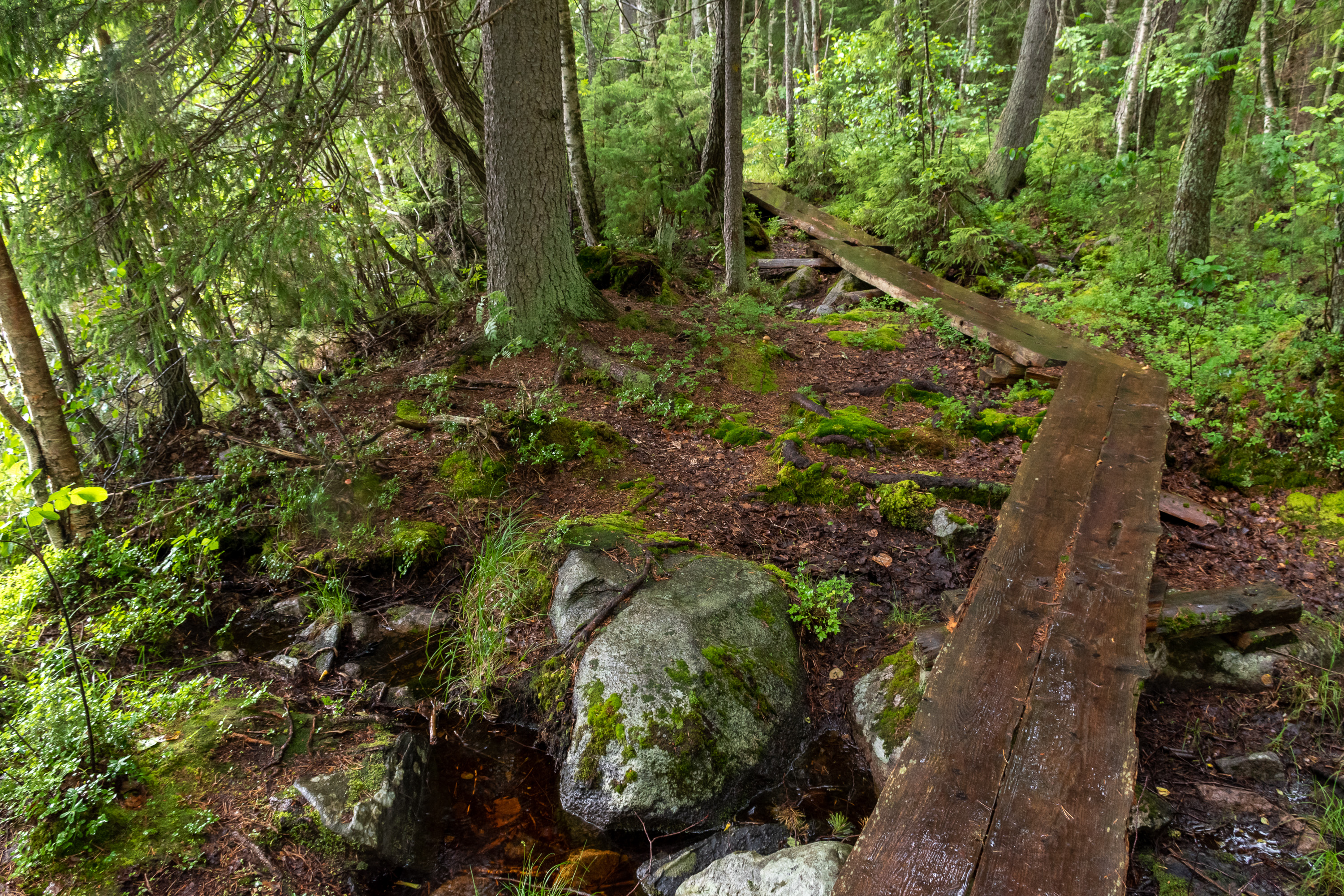 11. Тропа к обрыву идет через остатки старой дороги. Это одна из всего двух дорог, идущих поперек Пяйянне — озеро тянется на сотню километров с севера на юг, и в двух местах достаточно узкое, чтоб его можно было пересечь по дорогам. Когда-то это была узкая гравийка с совершенно дикими уклонами, новую асфальтированную дорогу перенесли севернее. Раньше она пересекала Пяйянне в узком месте через паром, а с 1997 — через мост. За озером и Ваарунвуорет дорога идет дальше на Луханку, один из самых маленьких муниципалитетов Финляндии.