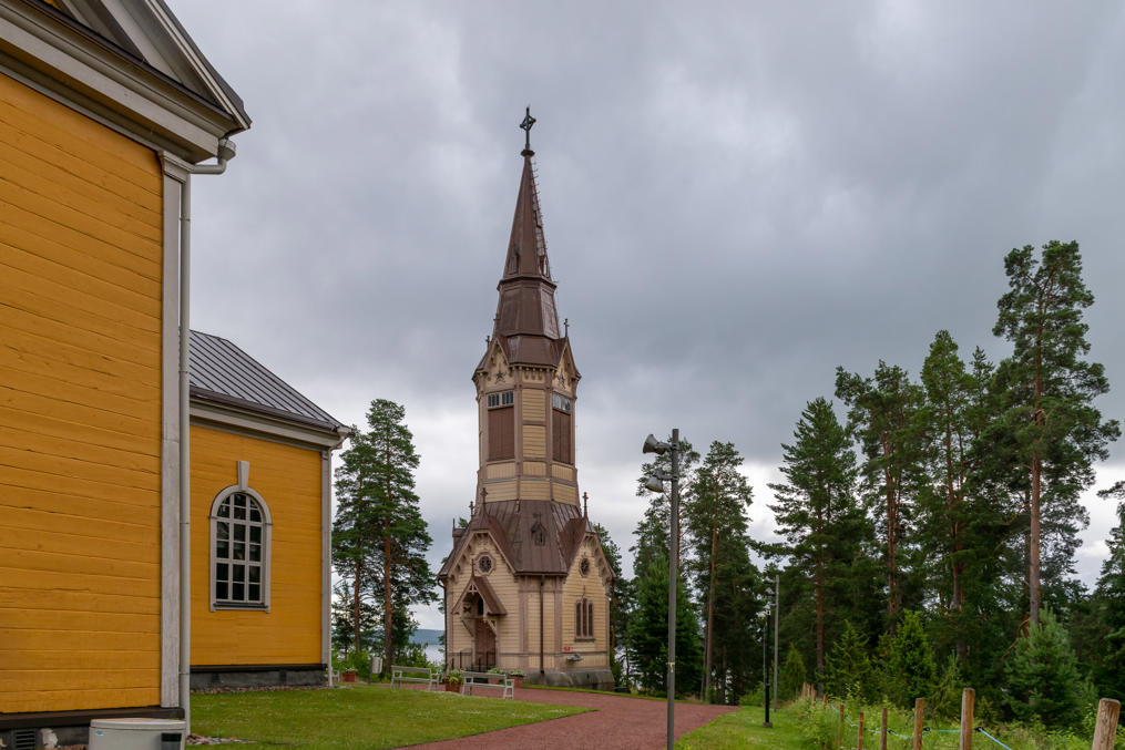 2. Красивая деревянная церковь 1827 года. Колокольня пристроена в 1886, в совсем другом стиле.
