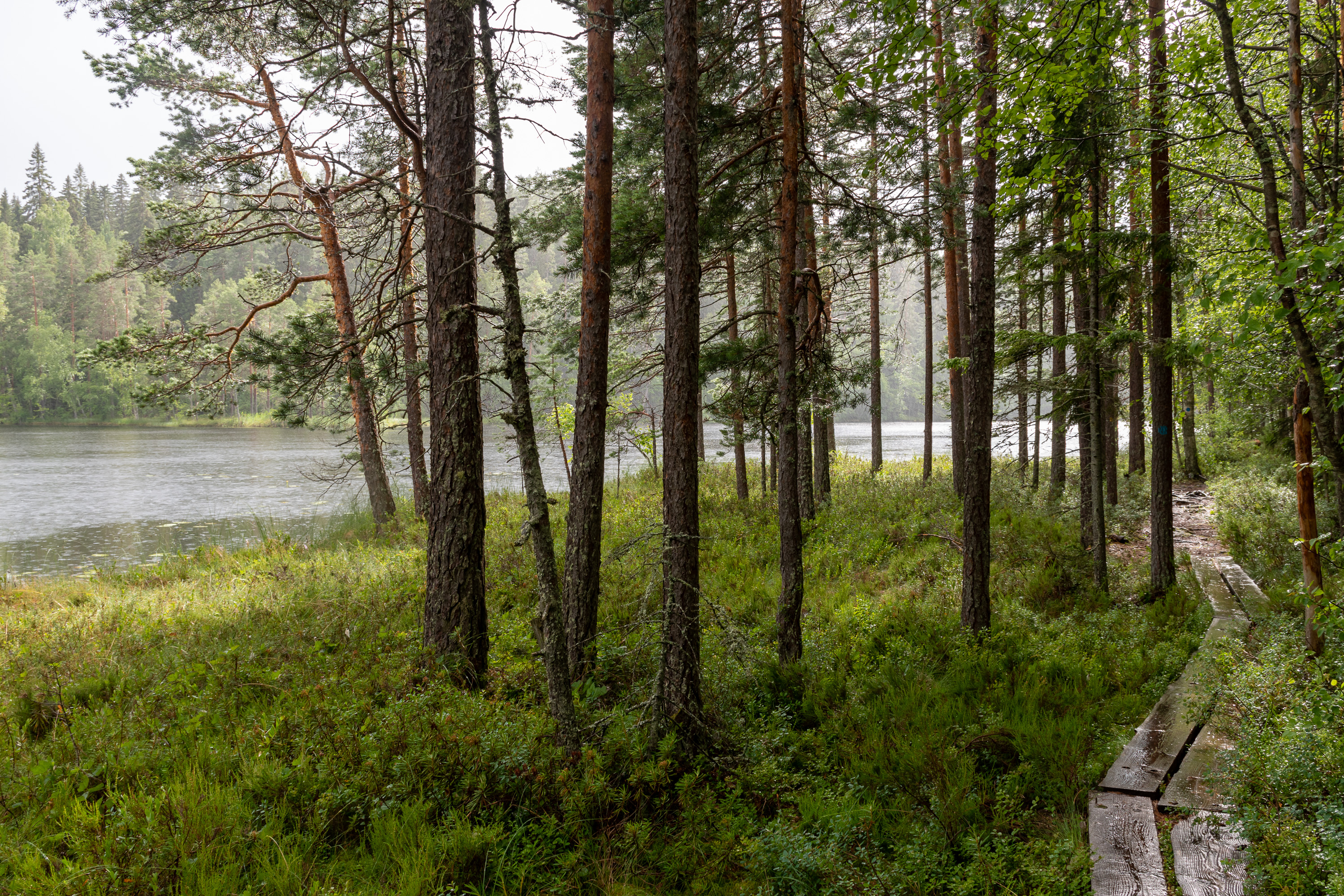 9. В окрестностях Корпилахти есть ряд неплохих природных достопримечательностей, в основном так или иначе связанных с озером Пяйянне; эти места, область Центральной Финляндии (Keski-Suomi), вообще славны крутыми холмами и видами с них на озера. Например, стоит заехать на холмы Ваарунвуорет (Vaarunvuoret) примерно в 15 км на юг от села. Кольцевая тропа длиной 4 км идет от придорожной стоянки через лес и мимо озерца-ламбушки к обрыву над озером Пяйянне.