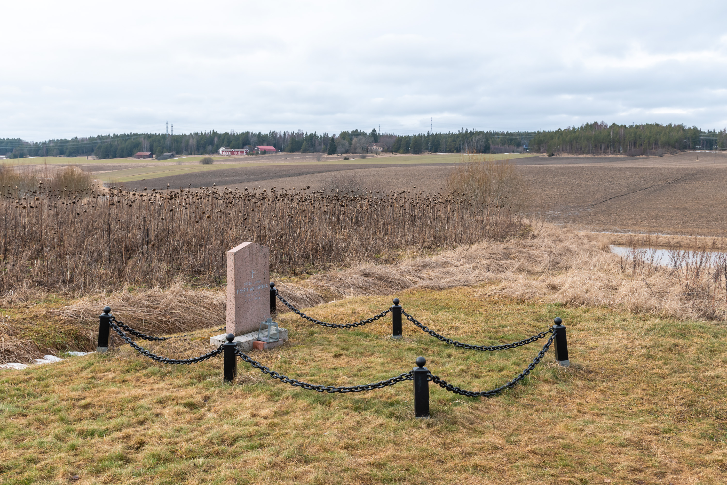 12. В округе у дороги пара мелких достопримечательностей — могила чувака из дворянской семьи, который непременно хотел, чтоб его похоронили у родной деревни над рекой, а не на кладбище, и родник, из которого якобы когда-то пили лошади короля Густава Васы, когда он ехал в Хямеэнлинну.